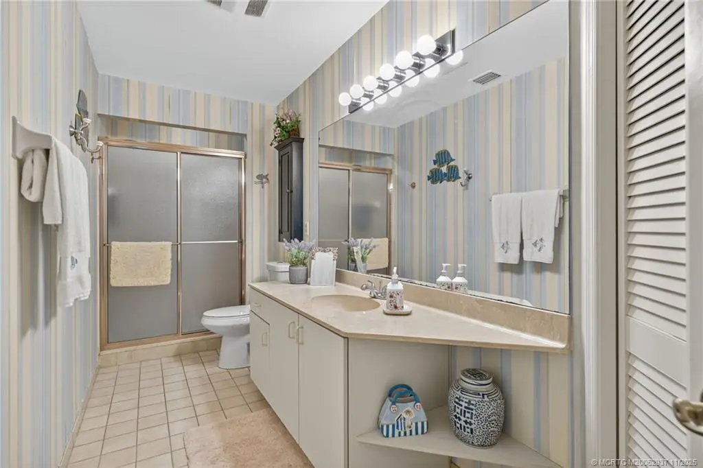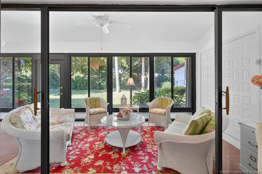 Charming villa in Montego Cove, Stuart’s premier 55+ community! This well-maintained, spacious 2/2 has a beautiful, glass-enclosed porch with a garden view & a large, walled patio that is perfect for your plants, grill, umbrella table, etc. Vaulted ceilings, separate dining area & a comfortable living area provide an inviting atmosphere. The kitchen area has a pantry & a breakfast area with sliding doors leading to the patio. The master suite has a huge walk-in closet & separate tub & shower. The guest bedroom includes a walk-in closet as well. Montego Cove residents enjoy the over 50 acres of park-like grounds, 2 lakes, 2 pools, a hot tub spa, a lovely clubhouse, tennis & pickleball courts and many recreational & social activities. Only a short drive to historic downtown Stuart on the St. Lucie River & the beaches. Pick-up trucks & 1 sm. pet allowed.