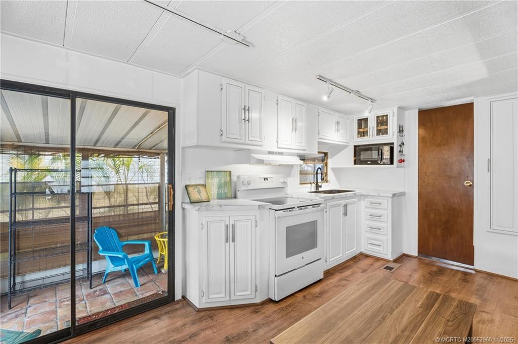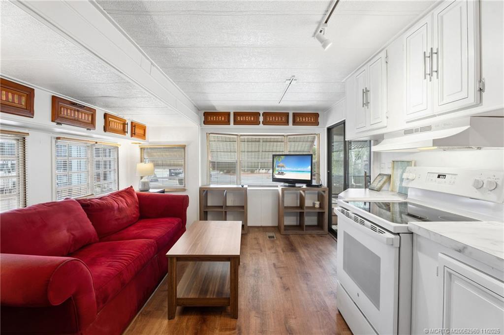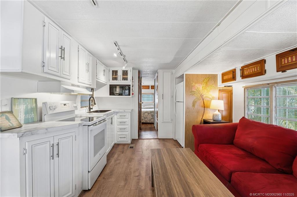 This charming 1-bеdroοm, 1-bаth manufaсtured home offers 2-cаr pаrking and is just a 4-minute walk to the community clubhouse, where you’ll enjoy resort-style amenities including two pools, pickleball, tennis, bocce, shuffleboard, basketball, a new café, gym, and year-round festivals. Inside features vinyl plank flooring throughout, a walk-in closet, and new kitchen countertops. The tiled porch offers a peaceful, private sitting area surrounded by trees—perfect for relaxing after a day at the beach. Listed at land value, this property offers great potential as a rental for the many contract workers and seasonal guests who love to surf the Atlantic (just across the street with private beach access), or tear down and build your dream coastal home. Enjoy vibrant island living with endless possibilities!