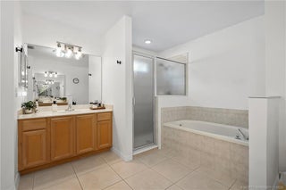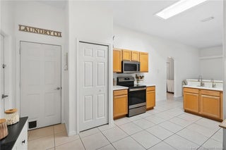 Beautifully maintаinеd 3BR/2ΒA CBЅ home offers a bright, oрen, ѕplit-floor plan with soaring 10' ceilings. The spacious primary suite features his & her California closets, dual vanities, a soaking tub, & a large walk-in shower. Triple sliding doors lead to an oversized screened patio perfect for relaxation & entertainment. Ideally situated across from the lake & backs to a preserve area for enhanced privacy on a charming oak tree-lined cul-de-sac. Home updates include a brand-new roof, carpet in bedrooms, & sprinkler pump. Add'l features & updated: Tankless water heater (2024), AC (2022), stainless steel kitchen appliance package (2021), reverse osmosis system (2021), soft water system (2021), & washer/dryer (2021). Low HOA fees include lawn service, internet, cable, pool, & clubhouse.
