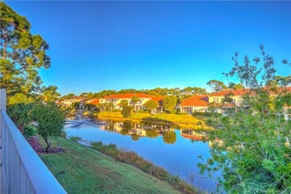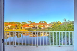 3 bedroom, 2 1/2 bath lakefront townhouse Castle Pines within PGA Village. The first floor offers, kitchen, dining and living room overlooking the lake as well as a bedroom with a view. The second level offers two bedrooms with an adjoining patio overlooking the lake. There is a large two car garage. Condo is currently getting freshly painted and will be available to preview in a few weeks. There’s only a few steps to be gorgeous pool and play area.