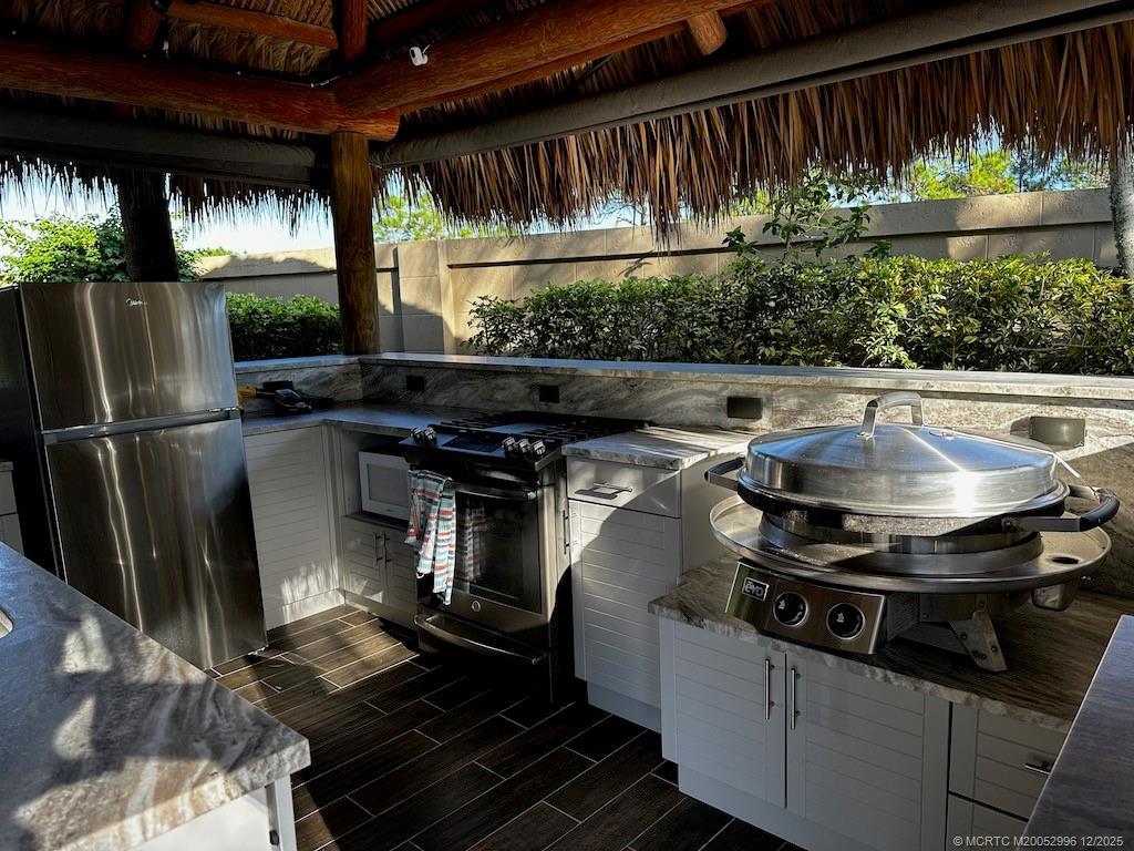Rare Opportunity: Expansive 4,361 Sq. Ft. Lot in Exclusive Cul-De-Sac! Don’t miss the chance to own one of the largest, most secluded lots in this coveted 11-lot enclave. Nestled at the end of a cul-de-sac, this exceptional lot offers ultimate privacy with its corner location backing onto a wall and nature preserve—creating a true tropical oasis ideal for entertaining. The spacious tiki features a full-size galley kitchen with marine-grade cabinetry, a residential refrigerator, stove, and Evo stainless steel grill. Outfitted with upgraded, functional furniture and isinglass curtains for cooler nights, this setup makes entertaining a breeze. A fantastic investment, this lot comes with rental bookings already in place for the upcoming season. Secure your slice of paradise today!