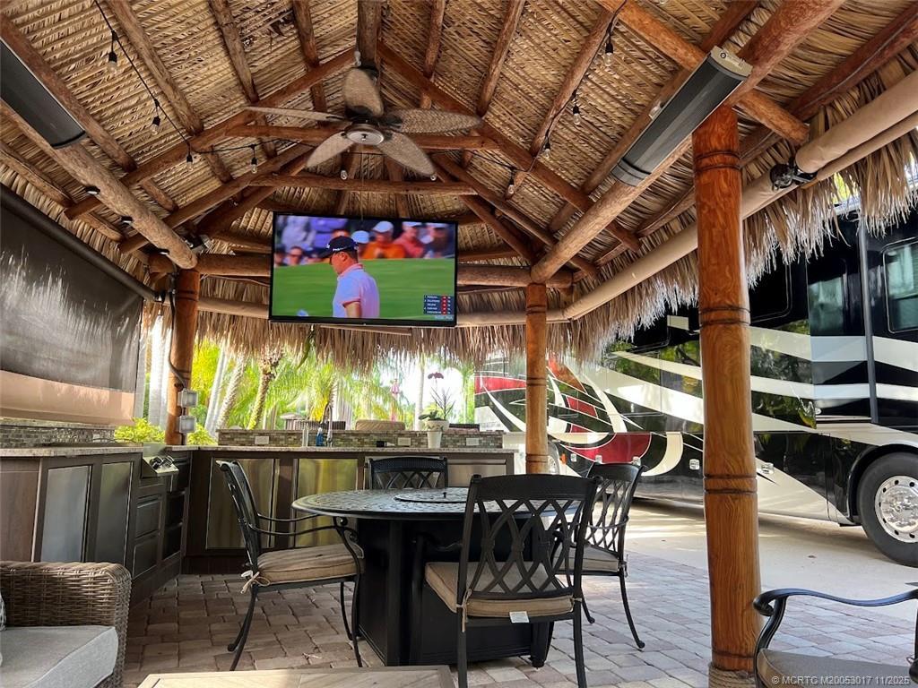 GREAT PRICE on thіs luѕh, turnkeу cornеr lot overlooking the 12th holе! Pеrfectly situated at Chipshot and Boundary, this expansive 4,000+ sq. ft. lot offers plenty of space for entertaining. The large tiki features a full kitchen with 2-burner propane stove, LG dishwasher, sink, mini fridge (2024), and a 70” TV (2025). Enjoy seating for 6 on the L-shaped sofa, bar seating for 3, and a dining/game table for 4. Roll-down screens, heaters, and ceiling fans ensure year-round comfort. The lot boasts fresh paint on the RV pad, extensive irrigated landscaping with over 20 palms, and gorgeous pavers throughout. Outdoor entertaining areas include a 6-seat wrought-iron fire table with umbrella, large Napoleon grill, and a peaceful rear lounging area overlooking the golf course and fountains, a perfect place to lounge and read a book in privacy. The expansive frontage provides a separate parking space accommodating 2 cars and a golf cart. Conveniently close to the north pool—this one has it all!