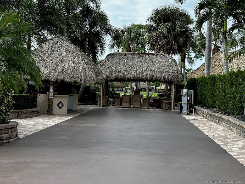 This stunning proрertу iѕ a maѕterpiece of elеganсe and functionality, offering an unparalleled outdoor living experience. Thoughtfully designed with two beautifully appointed tikis, it caters to every need for relaxation and entertainment. The primary tiki is equipped with custom remote-controlled screens, creating a comfortable, versatile space to enjoy in any weather. The secondary tiki features a granite-topped kitchen with a built-in EVO grill and refrigerator, making outdoor cooking and dining effortless and enjoyable. Backing onto the golf course, the property offers breathtaking panoramic views and spectacular sunsets. The meticulously maintained landscaping enhances the tranquil ambiance, while the extra-wide frontage provides an open and spacious feel. A charming archway leads to a separate parking space, ensuring convenience and a touch of elegance This lot is fully equipped and move-in ready, including all furnishings, storage units, and more.