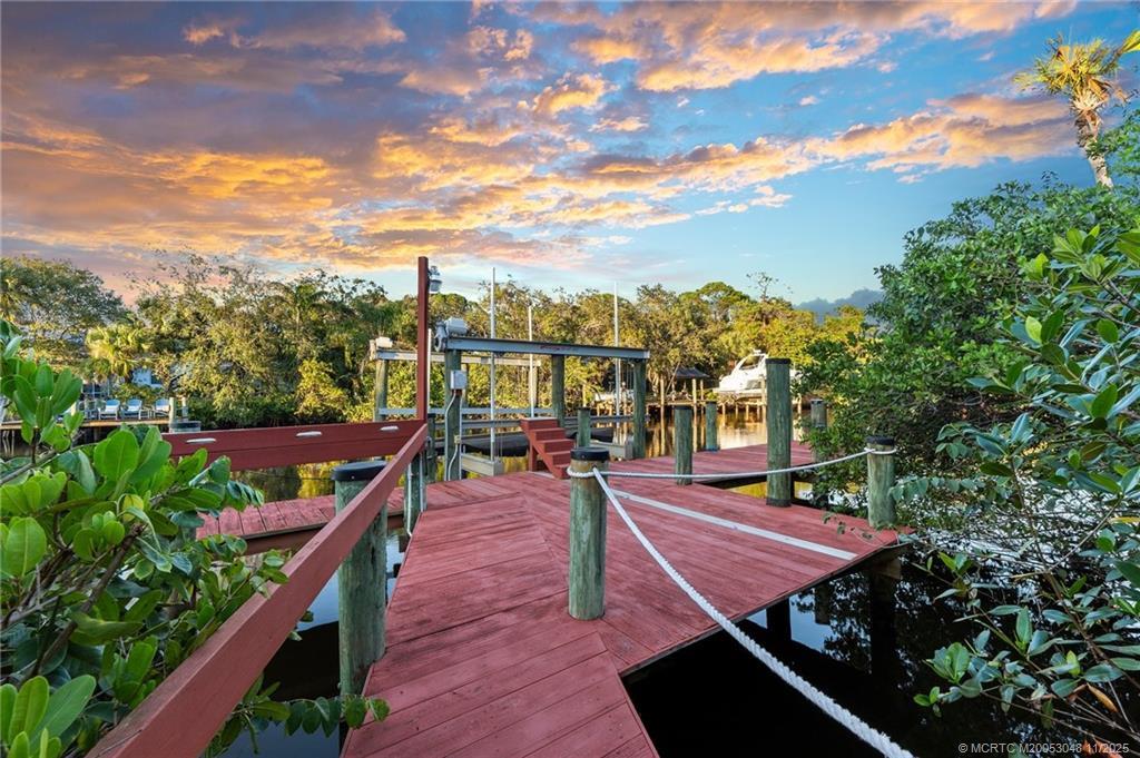 Your Waterfront Oaѕiѕ Awаits! Ιmagine over an acrе of рristine waterfront living with 330 ft of water frontage, a private dock, a 20,000 lb boat lift, and no fixed bridge-a true boater's paradise! NEW 2025 Generac whole house generator! The thoughtfully designed interior offers a luxurious primary suite & guest bedroom/home office on the first floor, with three guest bedrooms & a spacious loft upstairs. The gourmet kitchen, grand living spaces, and meticulous attention to detail make this home both stunning and functional. Enjoy your private outdoor oasis featuring a screened-in saltwater pool & patio, surrounded by lush gardens and winding paths. Whether you're relaxing at home or heading out on the water, this property offers it all! Conveniently located near shopping, dining, downtown Stuart, area beaches plus easy access to I95.