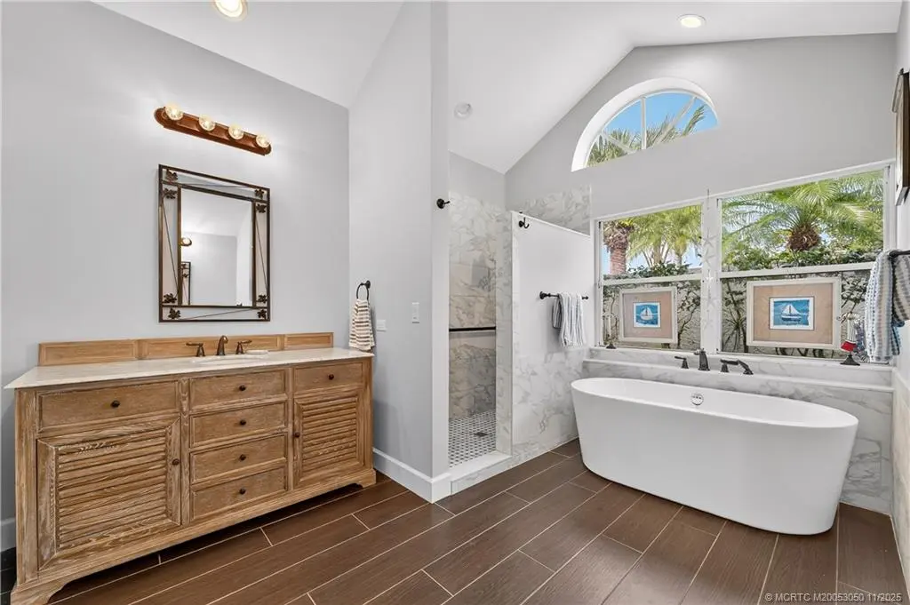 Breakfast Area, Bathtub, Dual Sinks, High Ceilings, Kitchen Island, Split Bedrooms, Separate Shower, Walk-In Closet(s)