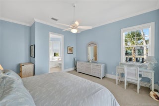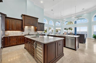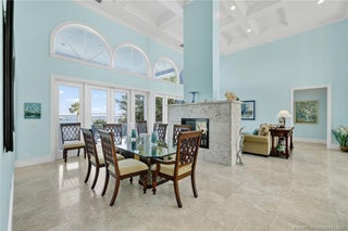 Coastal paradіsе! Thіs stunnіng 4,482 sq. ft. Braden & Braden cuѕtom hοme (built 2012) offers 4 bedrooms, 5 full and 1 half baths, with breathtaking Intracoastal views from every room. Wraparound porches on the second level capture the coastal breeze, while the first level features a 5-car garage, fenced heated pool, and private beach with expansive waterfrontage. An elevator connects the garage to the main living area, showcasing impact glass, marble floors, and a double-sided coquina stone fireplace between the living and dining rooms. The gourmet kitchen boasts a gas range, double ovens, oversized refrigerator/freezer, and two dishwashers opening into the large family room. The owner's suite includes two walkin closets, and his and her bathrooms! Enjoy serene views to Hutchinson Island as boats glide by and birds dance on the water. This CBS home is built on 69 poured concrete pilings with breakaway walls making it a tropical sanctuary. A very special first time offering!