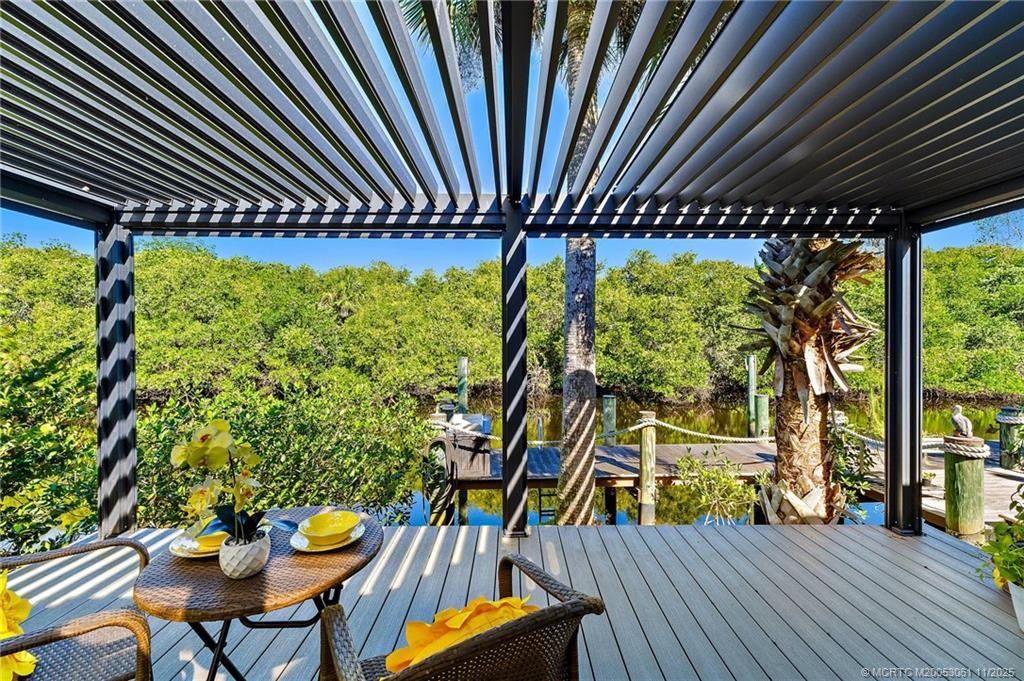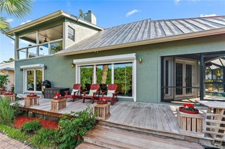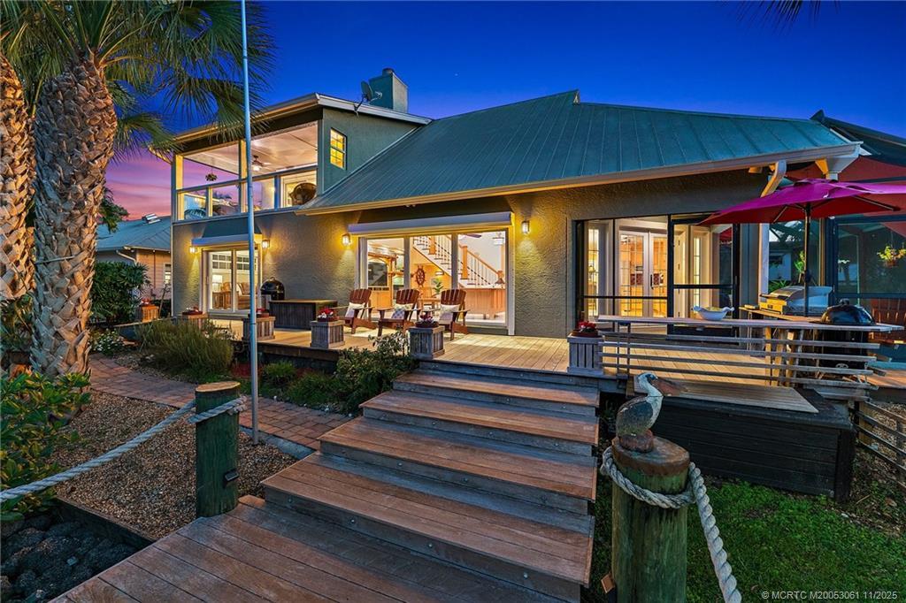 Boater's Parаdiѕe! ЅTUNΝING Waterfront & Presеrve vіews! Your very own Tropical Oasis w/lush colorful plants, Fruit trees, Hardwood (IPE) Multi Level decking, Custom heated/salt water Pool, Brand NEW Pergola w/Trex deck & 62+ft Dock on a deep canal for your boating pleasure. Watch manatee & beautiful birds as you relax or fish by the water's edge. This Solid Built CBS 2 story Home has soaring 21 ft ceilings, Hurricane Impact Windows/Doors, Metal Roof & Solar Panels for Low Electric Bills! Features: Granite kitchen, laminate flooring, coastal color palette, 3.5 baths & beautiful views of the shimmering water & bountiful nature! The Open Floor boasts a chef's Kitchen, Dining Area & Great Room. Two Owner's Suites w/private baths & walk in closets, 1st Floor Primary Suite has sliders to an expansive Deck perfect for your morning coffee. 2nd story primary Suite boasts panoramic waterfront views & delightful covered Balcony. 3rd Ensuite Bedroom perfect for guests. Expanded Garage w/workshop