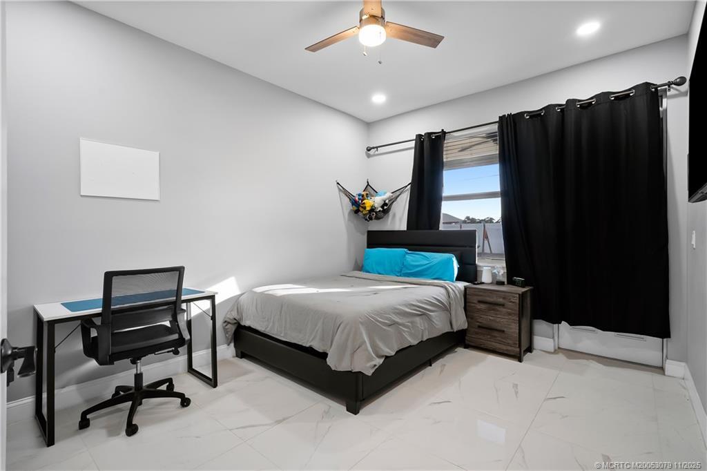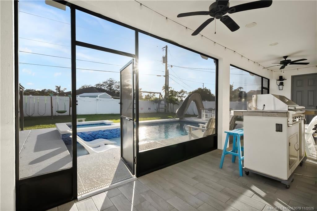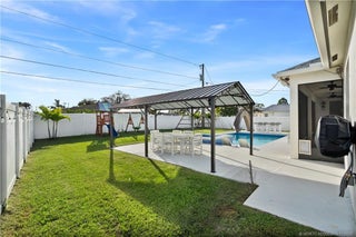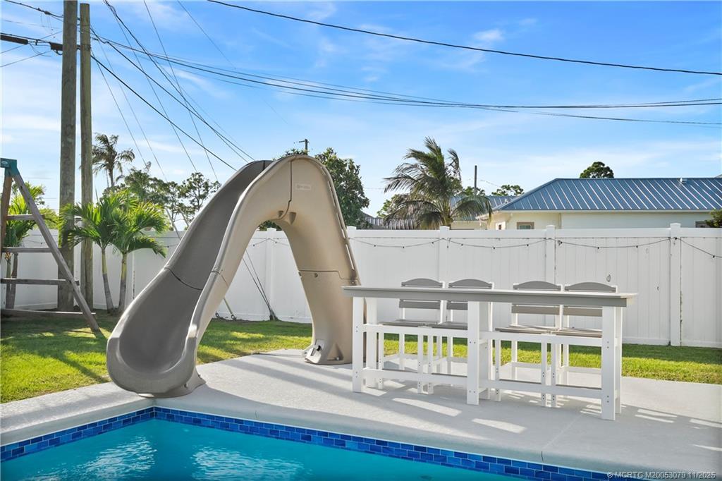 Welcome home to thіs сustοm 2021 5-bed, 3‐bath CBS home featuring іmpаct windows, high ceilings, crown molding, 42” cabinets with quartz counters and backsplash, a breakfast bar, and an open-concept layout. The split floor plan includes a spacious primary suite with two walk-in closets and a luxury bath with dual vanities, soaking tub, and large walk-in shower. Enjoy a private outdoor retreat with a brand-new heated saltwater pool and spa, sun shelf, water slide, extended patio, and oversized pergola in a fully fenced yard. The oversized circular driveway fits up to 10 cars, plus a trailer or boat, with double gates for more toys. Minutes from I-95, shopping, dining, and hospitals—NO HOA!