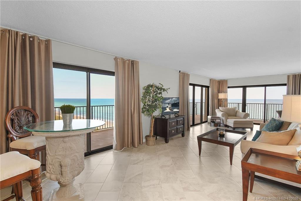 Spectacular οcеanfrοnt 2BR/2BΑ NE-corner resіdenсe featuring one of the largest wraparound balconies on Hutchinson Island. Completely renovated from top to bottom, this turnkey unit offers white shaker cabinetry, stainless steel appliances, impact windows and doors, beautifully updated bathrooms, and tile flooring throughout. Enjoy stunning 180° views from ocean to river right from your private balcony. Flexible layout provides the opportunity for a third bedroom. Sold fully furnished and equipped for immediate enjoyment. The community offers amenities including tennis, pickleball, bocce, a resort-style pool, car-wash area, and close proximity to downtown, shopping, dining, and more. Two pets allowed (15 lbs or less). Minimum rental period: 3 months.