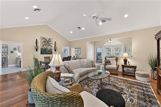 Must see Golf Villа. 3 enѕuitе Bedrοoms with renovated Bаths. Μanufactured wood flooring & crown molding in living area. Unique enclosed Florida room off living room which can be part of the living room or closed to be an outdoor covered patio w/impact pocketing screened sliders opening onto an additional patio with a SunSetter retractable awning. Outdoor landscape lighting makes for beautiful nighttime setting. Kitchen has Quartz Countertops and SS Appliances. Pavered golf cart path leads to separate golf cart entry at side of the 2-car garage. Within steps of the community pool. $124,000 Non-Refundable Joining Fee & $1,000 Refundable Equity Due at Closing. Monthly HOA Fee includes Club Dues, Trail Fees, POA, Village HOA, Capital Fund Fees and appropriate taxes. NO CORPORATE BUYERS. Membership approval process includes: $500 application fee plus background/credit check. Additional financial information may be required to provide for credit scores below 740.