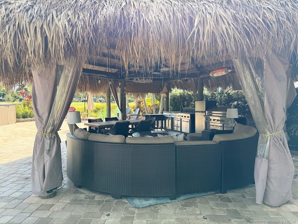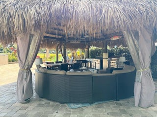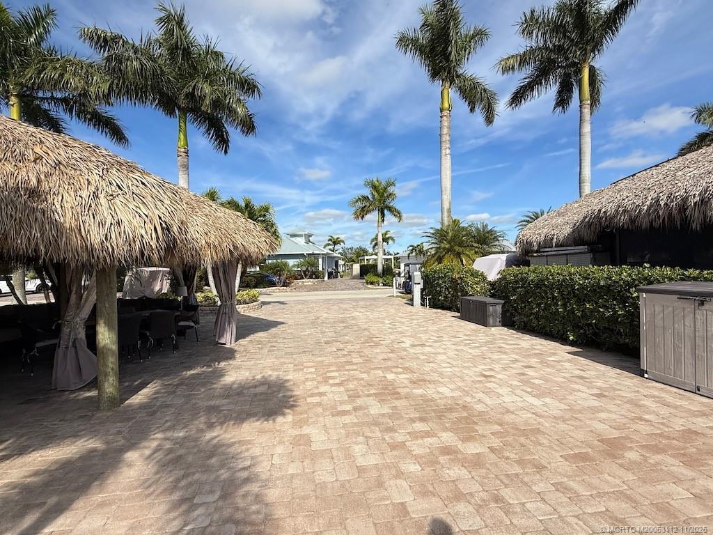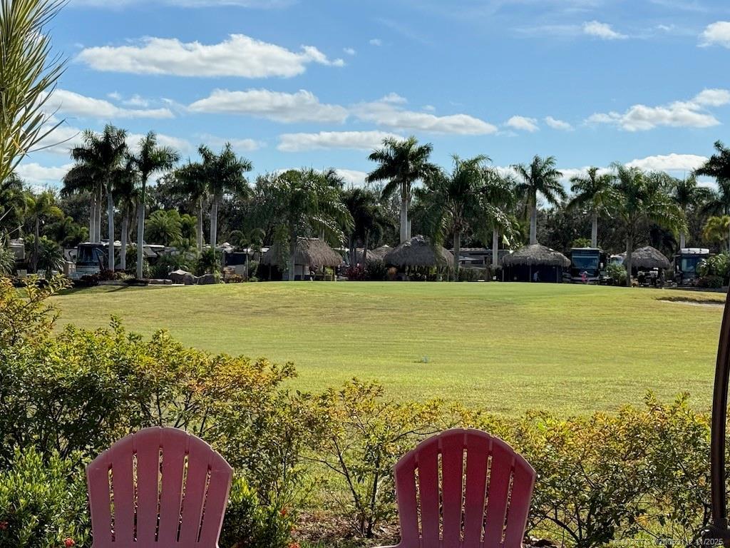 Beautiful, large pull іn lot οverlοoks thе rolling hills of the golf cοursе. Fully pavered with wide frontage that includes separate golf cart parking! Large tiki with modular, granite topped kitchen featuring built in grill, sink, etc. and apartment sized refrigerator. All tiki poles and support beams have been stained providing that "upscale" tropical feel and there's an attractive center pole support for the ceiling fan. Full eisenglass curtains completely enclose the tiki. Most furnishings remain including a new sofa set purchased in the spring, tv, Adirondack chairs etc. There's plenty of room for entertaining both inside the tiki area and out. Meticulous and move in ready! Golf cart available separately.