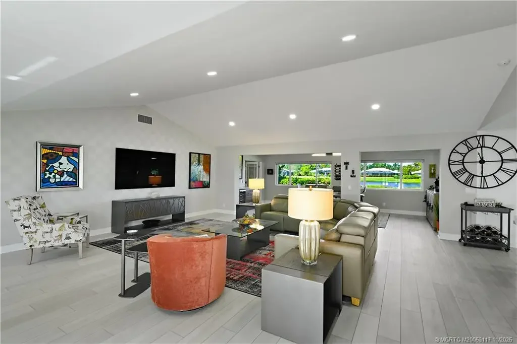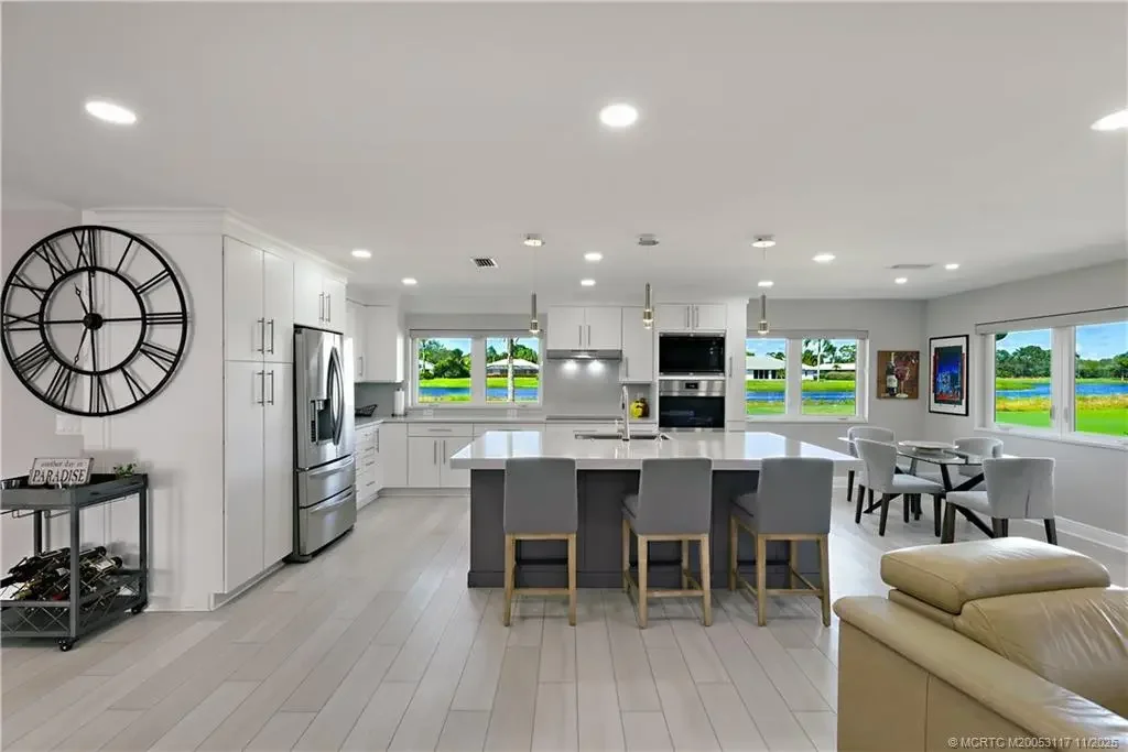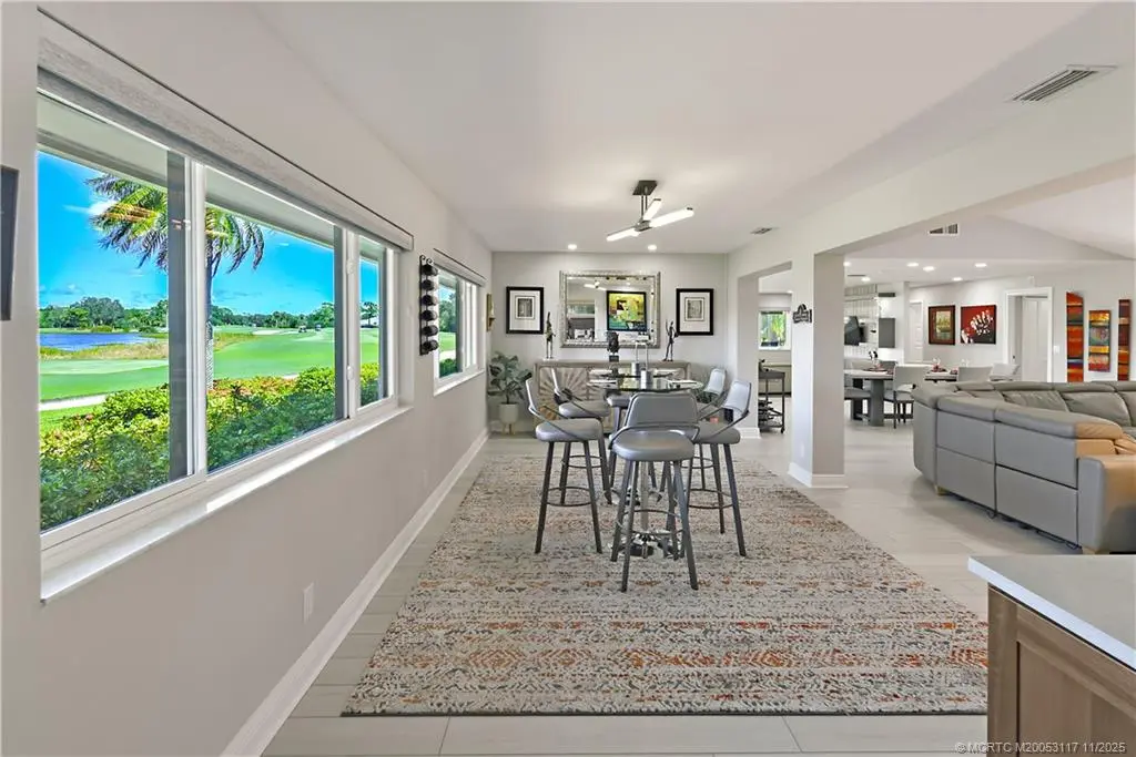 Priced to sell! Open concept living at it's finest, perfect for family and entertaining. Totally renovated and impeccably maintained, with All IMPACT windows. This home is a light and bright gem of a home with an up to date relaxed vibe. Just under 3000 sq ft with 3 BRs, 2.5 baths, Living room, den, breakfast area, dining area, 2 car garage PLUS Golf Cart garage. All one level living. Custom Kitchen with high end appliances and Quartz countertop and island. So much storage! Over sized primary suite, separate from the 2 guest bedrooms. Lanai w/ incredible views of 16th fairway. Tons of storage w/ pantry and walk in storage closet. 2 Car garage PLUS golf cart garage. Landscaping/cable /internet included in HOA Dues. An active, private community of just 302 homes on 600 acres means you will never wait for a Tee Time, membership dues include unlimited Golf/Tennis/Pickleball/Fitness Classes and more. Mandatory membership, $40K cap contribution, $65K equity.