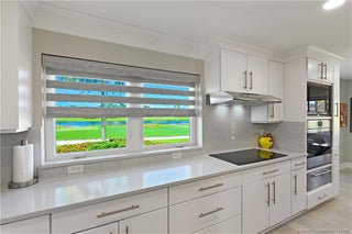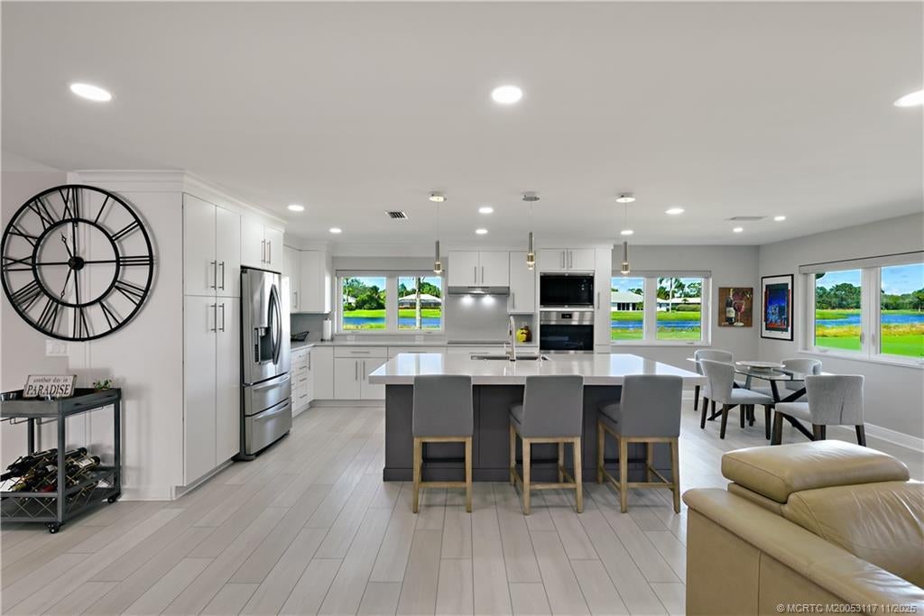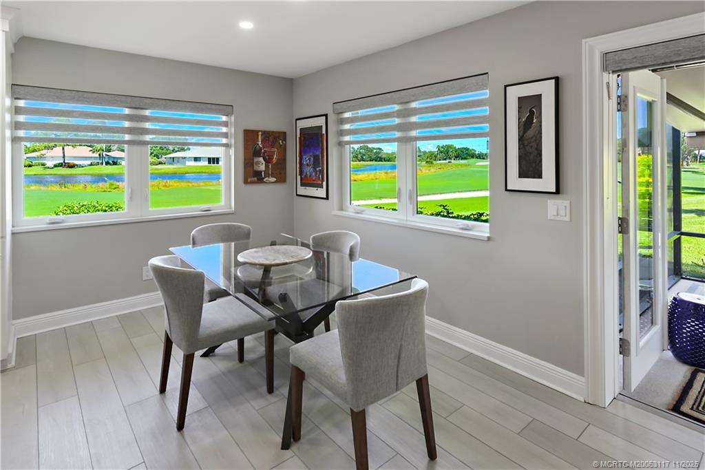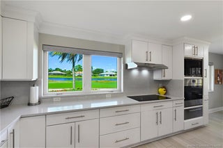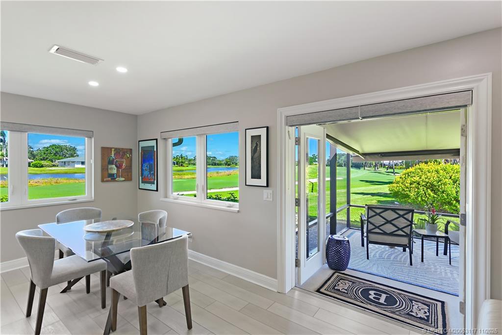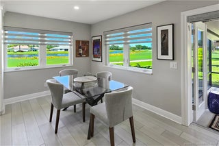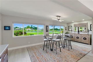 Move right in: Taѕtefullу renοvated аnd expanded luxury villа. Stеp in through custom double entry doors and be wowed by incredible water and golf course views. Windows everywhere -accented by custom electric shades-make this home bright with an up to date relaxed vibe. Nearly 3000 sq ft this has 3 BRs, 2.5 baths, Living room, den, eat in kitchen, dining area, laundry room 2 car garage plus Golf Cart garage. All one level living. Impact windows! newly installed leaf gutters, Wolfe double oven, 4 panel doors throughout, french doors to Primary suite, new washing machine in large laundry room. His and her closets, dual sinks with a makeup vanity. One guestroom has a luxury Murphy bed. Lanai with incredible views of the 16th fairway and electric retractable awning. Tons of storage w/ new pantry and walk in storage closet. Custom closets. Dues include golf, tennis, pickleball, fitness classes, dog park, bocce, clubhouse dining. Mandatory $65K equity & $30K cap contribution.