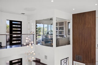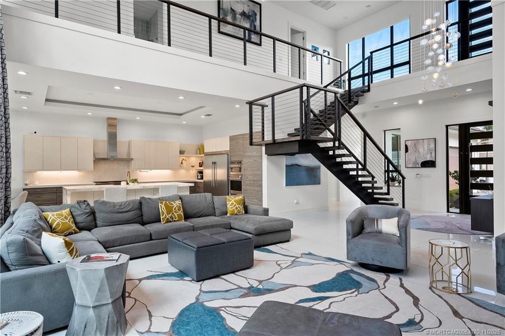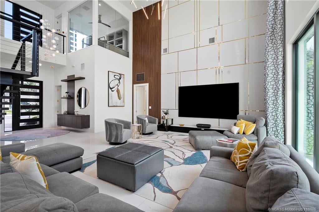 Experiencе modеrn watеrfront luxurу in this stunning contemрorаry masterpiece with impressive open floor plan and designer upgrades and finishes! This custom-built home showcases a sleek European kitchen with an illuminated quartz island, extra-large Frigidaire refrigeration, and premium finishes throughout. Luxurious master bedroom suite overlooking the water! Indulge in spa-quality details like the illuminated agate shell bathroom countertop and beautifully designed custom closets. With complete impact glass, a striking modern façade, whole-home water softener, and seamless indoor–outdoor living enhanced by roll-down patio screens, comfort meets style at every turn. The backyard is a true boater’s paradise—featuring a 20,000 lb lift, 9,000 lb lift, 1,500 lb jet ski lift, and a secure sea wall, all set along a peaceful stretch of riverfront framed by breathtaking sunsets. Resort style waterfront living at its finest!
