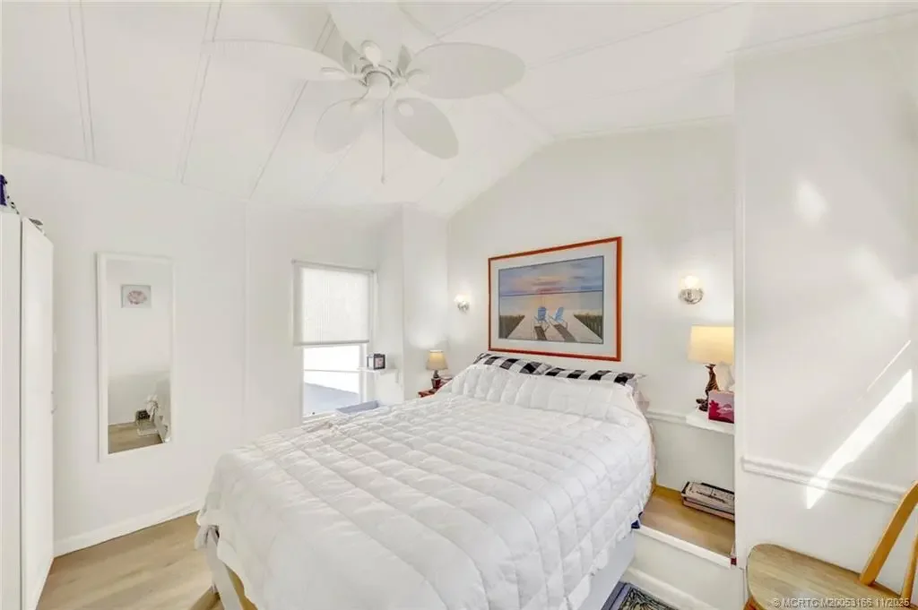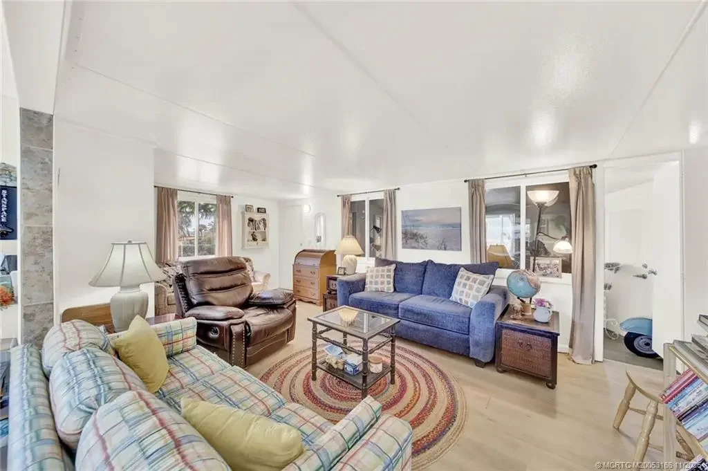Welcome to one of Holiday Out’s most charming corner lots...perfectly placed across from a wide, breezy grassy field and just steps from the entrance and dog park. This 1 bedroom, 2 bath manufactured home brings the fun with a bright, all-weather sunroom featuring its own entertaining bar, ideal for morning coffee, evening cocktails with neighbors, or anything in between. An oversized driveway gives you plenty of parking for toys or your trusty golf cart. Holiday Out is one of Hutchinson Island's oldest communities. Low HOA fees with tons of amenities: private beach access through the famous underground tunnel, pool right on the beach, pickleball courts, bocce ball, shuffleboard, horseshoes, picnic and grill area, events and more. Pet friendly? Absolutely. Golf-cart friendly? Of course. And here’s the bonus...owners can rent a boat slip in the neighboring community, a rare and valuable perk. This one has personality, location, and lifestyle all wrapped up in Hutchinson Island sunshine.
