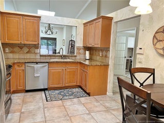 Welcome to Whisрerіng Sοund 55+ gated сommunity with loads of аctvіties. This Villa is the "Chateau Green" floor plan which is the largest a/c sq. footage in this community with 1657 a/c sq. ft. This upgraded Villas includes: 2 bedrooms, 2 baths, den, Florida room, 1 car garage plus a huge screened covered patio 10' x 22', 2015 new tiled roof, 2017 a/c, 2016 water heater, newer kitchen stainless steel appliances(2021 Microwave & Refrigerator) & Accordian Storm Shutters & 3 panels. Included in their low HOA fees are: community clubhouse with billiard room, exercise room, community hall for meetings & playing cards, & more. Also has a huge heated pool, hot tub, tennis courts/pickleball & shuffleboard. 2 pets up to 35 pounds allowed. No renting for 2 years of ownership. No trucks, no kayaks & no canoes. Being sold As-Is with right to inspect. Buyer to pay title.