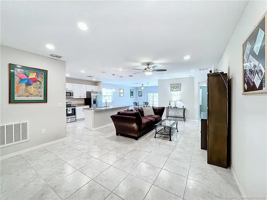 Move-in-ready Florida single-family home featuring an open floor plan, split-bedroom layout, and fully fenced backyard with room for a pool and/or lanai. Open kitchen offers granite countertops, center island, stainless steel appliances, pantry, and flows into the great room and dining area. Tile flooring in main living areas and abundant natural light throughout. The primary suite includes a walk-in closet and en-suite bath with dual-sink granite vanity and walk-in tiled shower. Three additional bedrooms provide flexible living space. Additional features include an interior laundry room, two-car garage, and spacious backyard. Centrally located near shopping, restaurants, hospitals, beaches, NY Mets Spring Training complex, and convenient to the Florida Turnpike and I-95. A great opportunity to own a well-located home with space, comfort, and outdoor potential
