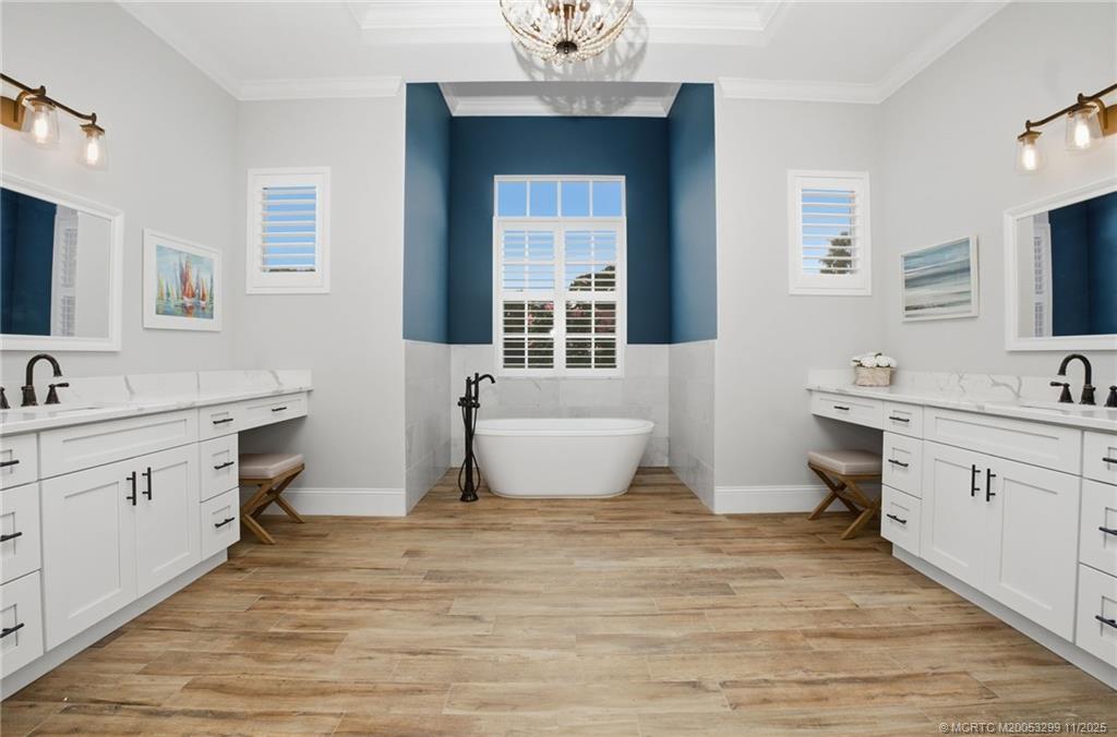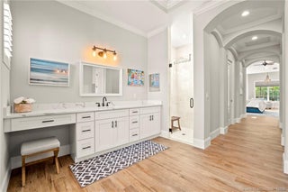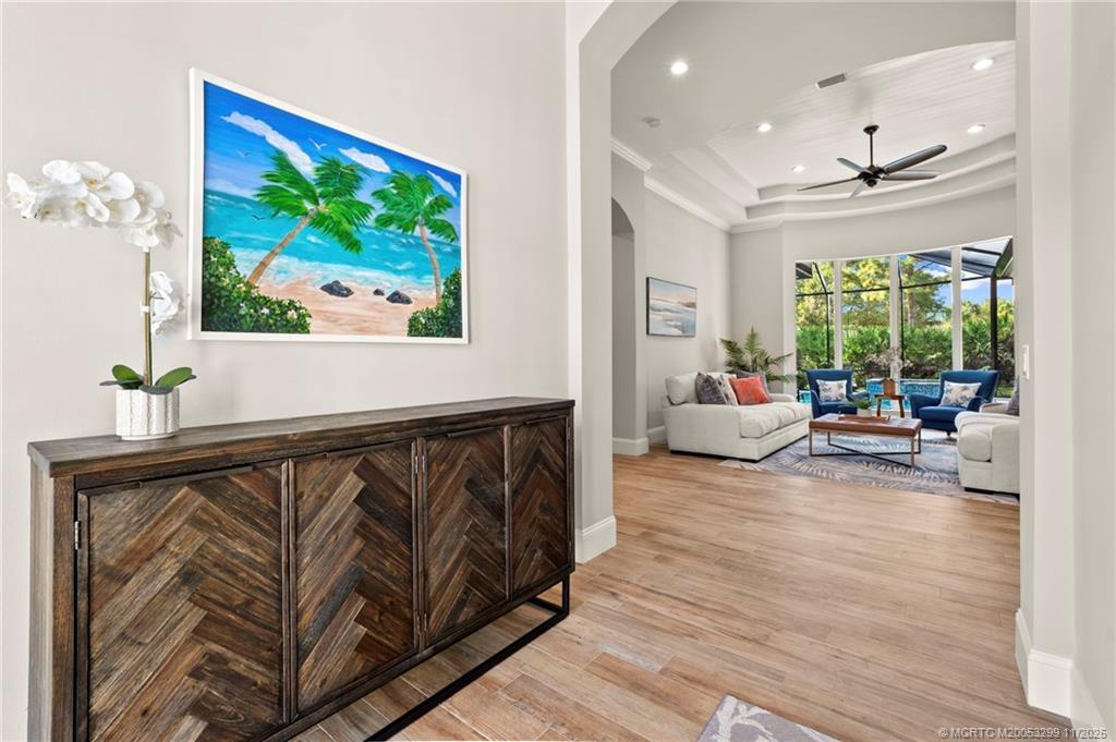 Welcome to 9311 Scаrborοugh Court, а stunning сoastal-chic rеsіdence tucked away on a quiet cul-de-sac in the prestigious PGA Village—home to world-class golf, gated tranquility, & an unmatched lifestyle. This 4-bed, 4-bath home was completely rebuilt from the studs out in 2021, offering the feel of a modern, model-perfect showcase property. Step inside to find wood-look porcelain tile throughout, clean lines, & a bright, pristine interior that blends luxury with comfort. The home features two brand-new HVAC systems (2025), ensuring year-round efficiency & comfort. Also included are whole home accordion shutters for added protection during storm season. The heart of the home seamlessly flows outdoors to a custom saltwater pool & spa (2023), fully screened & heated for all-season enjoyment. With a private backyard, expansive patio areas, & plenty of room to gather, this home is truly designed for entertaining & elevated outdoor living. Close to entertainment, I-95 & great shopping!