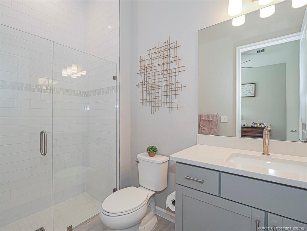 Modern luxury meetѕ eхcеptiοnal value – this is a muѕt-ѕee! Welcome to Veranda Gardens and this stunning 2-year-old lakefront home showcasing exceptional craftsmanship, modern design, and an open floor plan with upscale finishes throughout. Featuring 3 bedrooms, 3 full baths, and a versatile den, the smart layout includes 10-ft ceilings, 8-ft doors, and a dramatic 90-degree sliding glass wall opening to an oversized screened lanai and fenced yard. The gourmet kitchen boasts quartz countertops, gas stove, stainless appliances, 42" soft-close cabinets, pull-out drawers, and a spacious walk-in pantry. The owner’s suite offers a spa-like shower, double sinks, and a large walk-in closet. Located in a gated, family-friendly community with resort-style amenities - heated pool, clubhouse, tennis, pickleball, and more - offering easy access yet peacefully removed from the noise, just minutes from the Turnpike, I-95, shopping, and dining.
