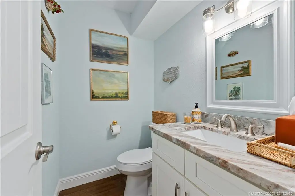 Stunning, Fully Updated 2-Story Home in the Prestigious Yacht & Country Club of Stuart! Beautifully remodeled 4-bedroom + Office, 3-full bath, 2-half bath home offers over 3,000 SF showcasing wood feature walls & ceilings, custom built-ins, and exquisite finishes throughout. The dream kitchen features solid wood cabinets, sleek quartz countertops, stylish backsplash, & top-of-the-line LG appliances. The luxurious bathrooms offer marble showers, custom cabinetry, & quartz countertops. Featuring French doors, a decorative fireplace, modern light fixtures, and stunning wood-look tile flooring throughout, this home seamlessly blends style and comfort. The screened-in pool area offers the ideal setting for relaxation or entertaining. A screened balcony off the rear of the home overlooks the tranquil pool area and spacious yard. Make this home your perfect retreat for family living.