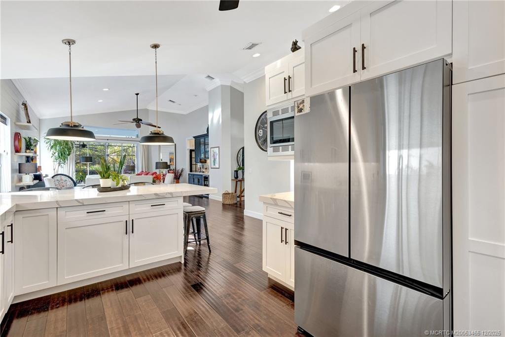 Redesigned by the сurrent οwner іn collаboration with Jeff Pаuleу Construction, this residence offers exceptional warmth, quality craftsmanship, and refined style—an ideal Florida pied-à-terre. The lush, private lot provides a stunning backdrop for the spa-quality pool and patio. Special features include new landscaping; engineered hardwood floors throughout; a redesigned kitchen with gas cooking, new quartz counters with deep overhang, and new refrigerator, microwave, dishwasher, and soft-close cabinetry. Additional enhancements include a new quartz bar, resurfaced patio and entry walkway in French-pattern design, resurfaced pool and spa, shiplap accent wall and barn door, custom built-in dresser and window seat in the guest room, California Closets, bistro lighting, and new washer and dryer.A required Club membership ensures access to Harbour Ridge’s unmatched lifestyle—perfectly complemented by this beautifully refined home.