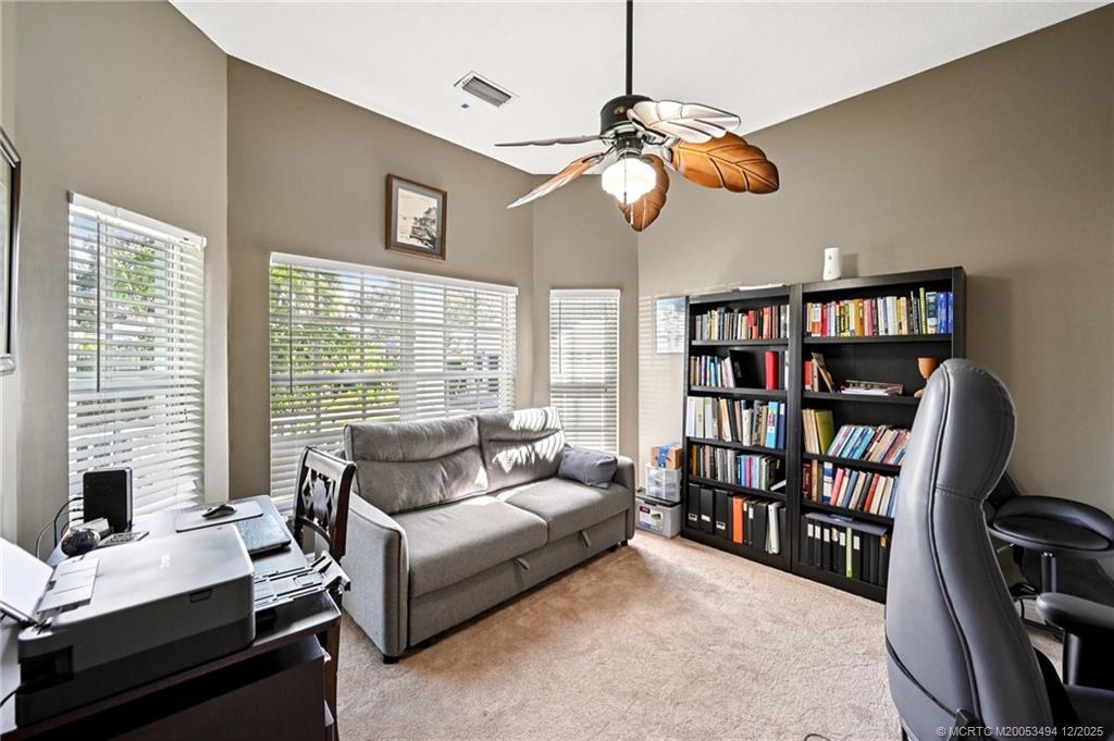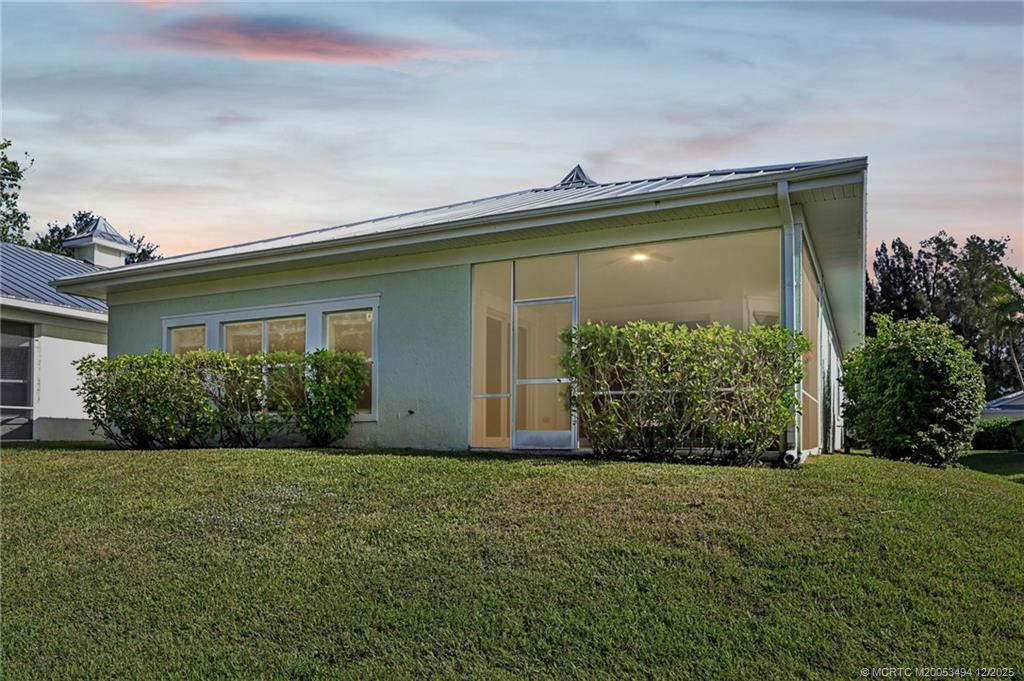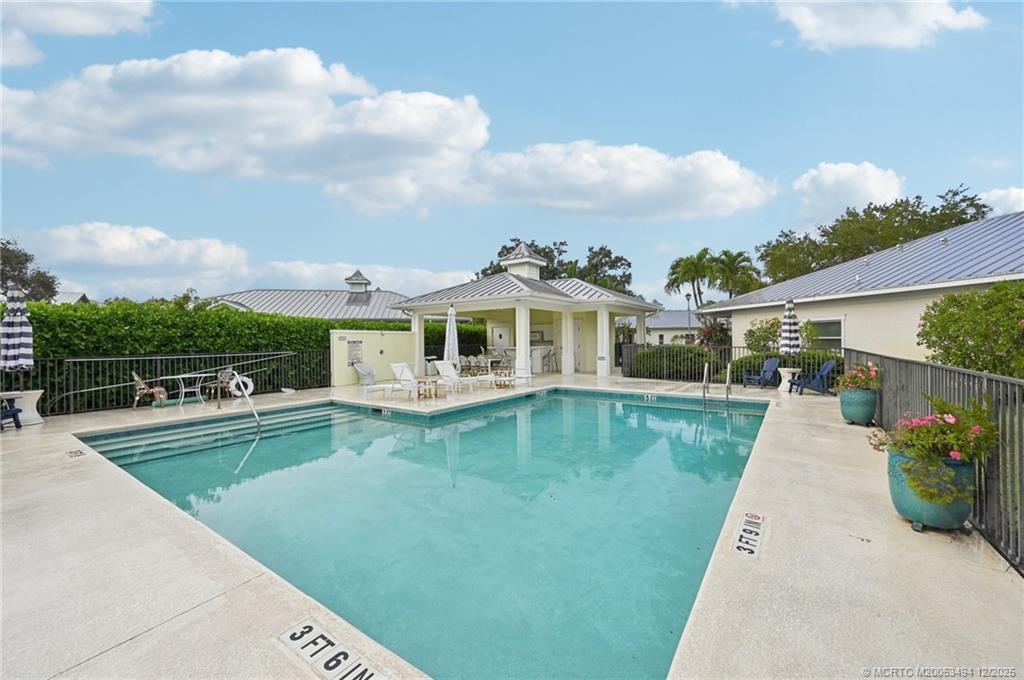 Prime Cul-de-Sac Living in The Estuary! Ideally located in the heart of Stuart, this impeccably maintained CBS-built home (2003) offers peace of mind with a durable metal roof and full impact windows. Situated on a quiet cul-de-sac directly across from the community pool, this property perfectly combines convenience and comfort. The interior features a spacious, open floor plan with elegant tile throughout the living areas and cozy carpet in the bedrooms. The upgraded kitchen is a chef’s delight, boasting beautiful solid surface countertops and premium stainless steel appliances. Step outside to your private screened and covered lanai to enjoy breathtaking Florida sunsets every evening. The Estuary is a premier gated community just minutes from shopping, dining, and pristine beaches. With its unbeatable location and move-in-ready condition, this home is priced to sell and won't last long!