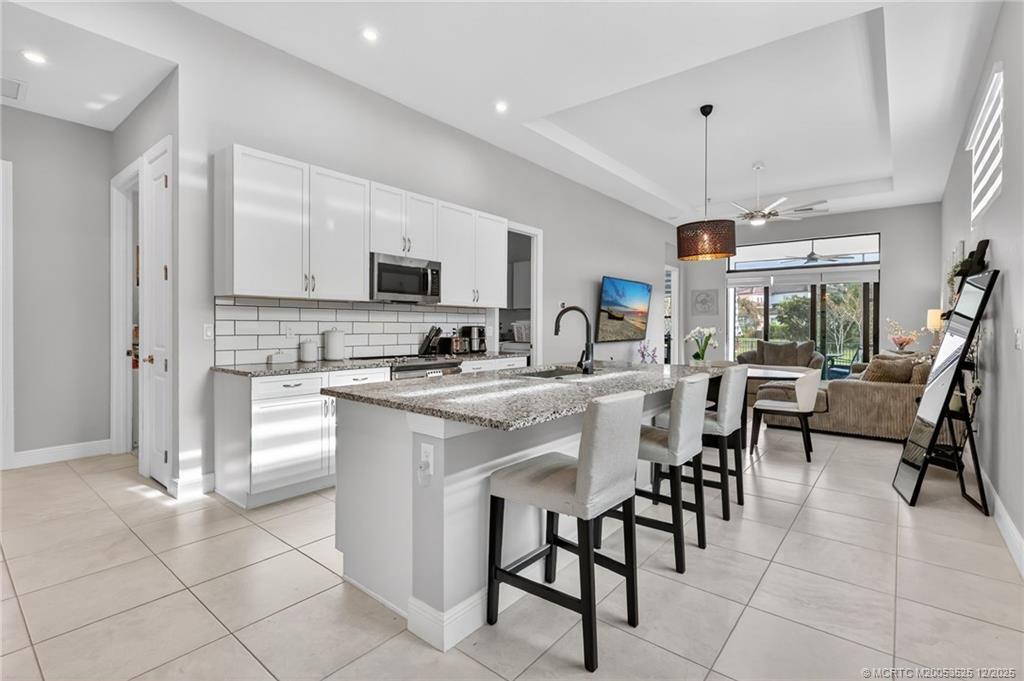 Better than new!! Only twο yеarѕ old! Lοcated in the beautiful Rіvellа neighborhood of Port Saint Lucie, this home offers 3 bedrooms, 2 baths, plus a bonus room that could be a 4th bedroom, office, den or home gym. This home was built with many features including GE appliances, Moen fixtures, granite countertops, 18 inch ceramic tile, and more! The high ceilings and open floorplan allow this home to live large. The split floorplan offers privacy. The screened patio and fenced yard allow the owners to enjoy the beautiful Florida lifestyle and a fantastic lakeview! There is room for a pool but the community clubhouse offers a pool, tennis, pickleball and fitness center. This concrete block home has all impact windows for peace of mind during storms. There is also extra insulation in the attic for energy efficiency. The ideal neighborhood location is minutes away from shopping, dining and beaches. Highways are a short distance away making West Palm Beach or Orlando an easy drive.