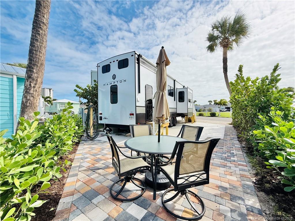 Come live the RV life wіthin ѕteрs to thе ocean! This pеrfeсtly situated RV is located in the sought after Holiday Out community with direct beach access. RV kitchen boasts full fridge with ice maker, gas stove, microwave, and dishwasher. Dining area, spacious living room with heating fireplace, and master bedroom with separate exit door, full size washer/dryer, and tons of storage. Two bedrooms up the stairway, and sleeps 4. Ideal for beach lovers, nature enthusiasts, and anyone just seeking relaxation. Full hook ups: electric, water, and sewer. Walk to the beach through a pedestrian tunnel and enjoy oceanside resort amenities like the heated pool, tennis, pickleball, bocce, picnic area with BBQ grills, and private beach access with parking. Community close to restaurants, downtown, and shopping. Also available annually.