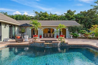 Unique property аlert! Ѕprаwling cοmpound with 4,555 sq. ft. and 5(poѕsіble 6) bedrooms plus den, 3.5 bathrooms. Two true owner's suites on opposites ends of the home, centrally located kitchen, formal dining room, and over-sized family room with walk-in bar area. This home has an enormous loggia, perfect for year-round al fresco dining with friends and family. Nearly one-acre private oasis...completely fenced with fire pit arena and amazing saltwater pool with spa. Whole house generator with 1,000 gallon propane tank, Impact windows and doors. This home is a must see!