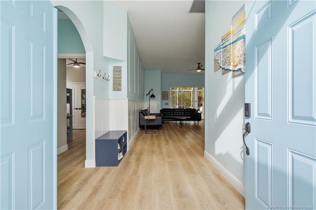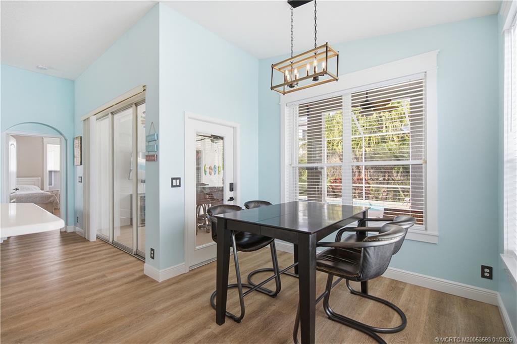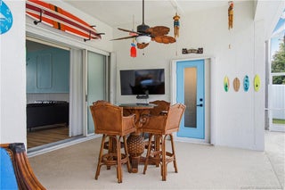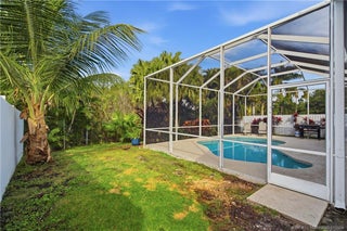 Welcome home to thе pеrfeсt blend of іndoor-outdoor Floridа livіng in this 3-bed, 2-bath pool home located in desirable Windemere. A standout feature is the hurricane-rated electric screen at the front entry, which—when paired with pocket sliding glass doors to the covered rear patio—creates an inviting cross-breeze ideal for true subtropical living. The family room features a striking built-in fireplace wall designed to frame your flat-screen TV, complemented by bright white wainscoting and trim. Built with concrete block construction, this home offers peace of mind with a 2020 metal roof and a full combo of panel and accordion shutters. The efficient 1,629-sqft layout includes space for formal dining and a generous kitchen with granite countertops and 2023 black stainless steel appliances. Located in one of Jensen Beach’s most sought-after neighborhoods within the A-rated Martin County School District, this home offers a prime location close to shopping, beaches and downtown Stuart.