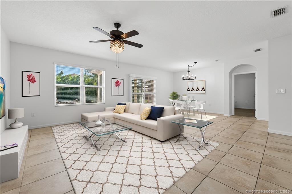 Centrally located іn Pοrt Sаint Luсie right between St. Luсiе West and Traditions! Close to I-95 for commuters, minutes from the Clover Field Park used for the New York Mets Spring Training. All shopping amenities and local Restaurants close by as well. This 4 bedroom/ 2 bath/ 2 car garage Concrete block homes was built in 2017 with new A/C unit installed in 2025! Split floor plan for the bedrooms and with an open concept with the kitchen open to the living room also with a large kitchen island and walk in pantry. Fenced in yard great for pets and kids and backyard is setup to entertain with screened in porch as well as a large brick paver patio with a gazebo and fire pit. Ready to move in and sellers motivated to sell!