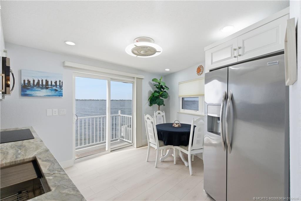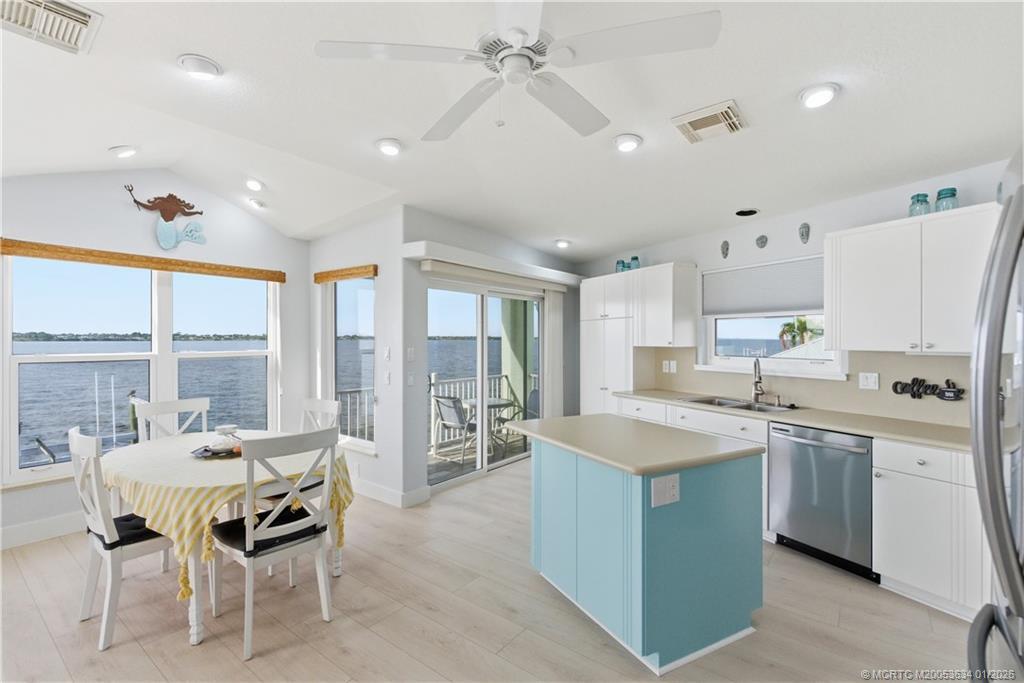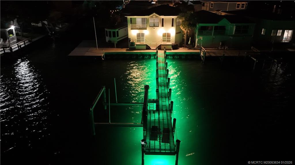 Waterfront living at its best! This fully furnished 2BD (potential 3), 3BA home offers 45 ft of direct Intracoastal frontage with a brand-new 90 ft dock featuring deep-water access, composite decking, and a 24,000 lb boat lift—perfect for serious boaters. Two nearby inlets provide quick access to the open ocean. Enjoy sweeping water views and unforgettable sunsets from your backyard. Inside, you’ll find new LVP flooring, a new standing seam metal roof, SS appliances, and partial impact glass. The lower level is configured as a private guest suite with kitchenette and can easily convert to a 3rd bedroom. A golf cart pad and 2 covered parking spots adds everyday convenience. Ideal as a full-time residence, vacation getaway, or rental. Life on Nettles Island feels like a permanent vacation, with resort-style amenities including 2 heated pools, tennis, pickleball, miniature golf, on-island grocery store, riverside restaurant, and private beach club—everything you need, right at home.