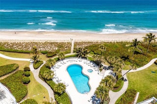 Intelligently designed with parking under the building, this first floor unit (elevation:15’) offers the ocean views of a second-floor unit & the convenience of walking out the back for direct beach access or a short walk to the clubhouse next door–perfect for pet lovers and ocean enthusiasts. Beautifully updated, offering true luxury coastal living with travertine floors, designer touches throughout, power shades, plantation shutters, impact glass, 2 assigned parking spaces/storage in garage. The spacious, relaxing primary suite is a refuge unto itself with a soothing, spa-like bath. Enjoy tropical breezes from the expansive oceanfront terrace or sunsets from west-facing balcony. Sailfish Point offers privacy, security & world-class amenities: oceanfront clubhouse w/ 5 dining options (fine & casual), Jack Nicklaus Signature Golf, deep-water marina with reasonable rates (up to 127’), tennis, pickleball, fitness center, spa & salon. Private, jet-capable airport w/customs minutes away.