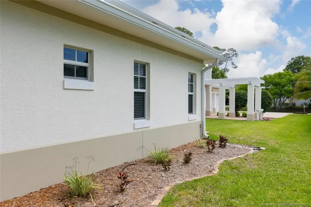 A rare find! NO HOA. On a quiet dead-end street of newer homes. Insulated poured concrete construction, concrete flooring system second floor, impact glass, & metal roof results in low power bill & low property insurance. You will save $$$ every year! Primary suite & office/potential fourth bedroom are on the first floor. All bedrooms are en-suite. Open entertaining kitchen area with Italian Calacatta gold marble island, beautiful quartz countertops, & dependable Kitchen-Aid appliances. Furniture available. Newly rebuilt composite Pergola, with private courtyard area and covered patio has room for a pool. Walking distance to highly rated Palm City Grade School & Hidden Oakes Middle School. Publix, shops & restaurants just blocks away too! Extra deep & wide garage. A Certified "Green Home" by the Florida Green Building Coalition. Convenient commuting location with I-95 and Fl Turnpike nearby. Come live the good life here! Quaint downtown Stuart and the beaches are just minutes away