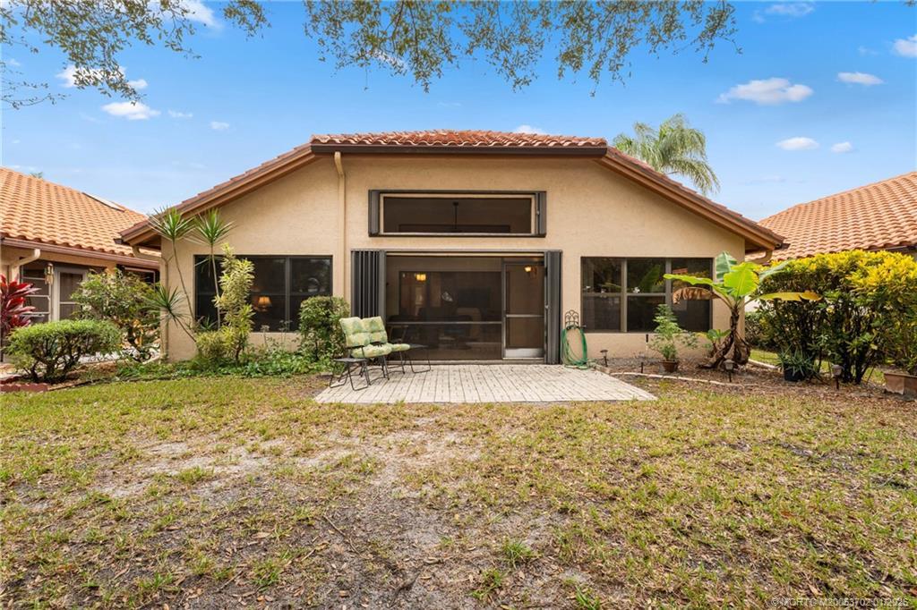 Experiencе refіned lіving in thіs beautifully maintaіned 3‐BR/2-BA residence ideally located in the heart of Palm City. Thoughtfully updated, this elegant home showcases a light-filled open floor plan with volume ceilings, & sophisticated crown molding throughout. The stylishly updated kitchen opens seamlessly to the main living areas, perfect for both everyday comfort & entertaining.Retreat to the expansive primary suite featuring a generous walk-in closet & a spa-inspired bath with dual vanities, a separate soaking tub, & walk-in shower. Enjoy tranquil garden views from the enclosed screened patio, creating a peaceful indoor-outdoor living experience. Nestled within a sought-after gated community offering a resort-style pool & tennis courts. Walk or bike to banks, shopping and dining—delivering the ultimate blend of luxury, convenience, and lifestyle.