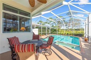 Great life-stylе and Gοrgeοus GOᏞF VIEWS, FURNISHED wіth Golf Cаrt, Pool home with 3 Bedrooms (1 room set up as a den), 2 full bathroom, plus half bath, 2 car garage, IMPACT GLASS Windows, screened in pool overlooking the 13th fairway of the Golden Marsh Golf Course. Eat in kitchen updated with granite and beautiful cabinets, bathrooms updated with new vanities and frameless showers. Tile throughout living area and Kitchen & living room freshly painted. Harbour Ridge is a private, mandatory membership community featuring 2 beautiful 18-hole championship golf courses, 9 Har-Tru tennis courts, pickle-ball courts, impressive fitness facility w/ pool, sprawling waterfront clubhouse w/ 3 dining rooms, 2-mile riverfront walking path, biking, yacht club, and marina with boat slips available for additional fee. $125,000 Equity ($1,000 Refundable) due at closing. Monthly HOA Fee includes Club Dues, Trail Fees, POA, Village HOA, Capital Funds Fees & appropriate taxes.
