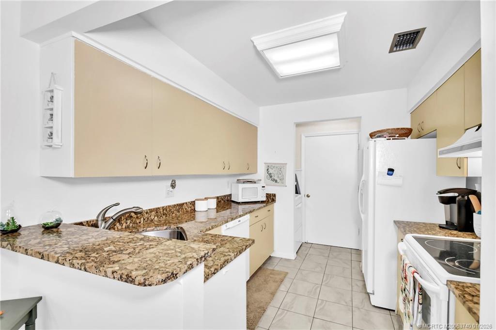 Charming & Desirable town home located minutes from the beaches, Atlantic Ocean, boat ramps and downtown areas offers easy Florida living. Inside, the living room and kitchen have tile floor coverings, built-in shelves and additional storage under the stairs. Kitchen/ bathrooms boast granite countertops and are super clean. The primary bathroom has a renovated step-in shower, dual sinks and walk-in closet. The covered outside patio/sunroom space has lovely pond and fountain views. This property is easy to show and is a must see. Additional features: Roof is 2021, 1 car garage with extra parking in the driveway and spacious bedrooms. Holly Creek offers affordable association fees, large community pool, pickleball/tennis courts & clubhouse.