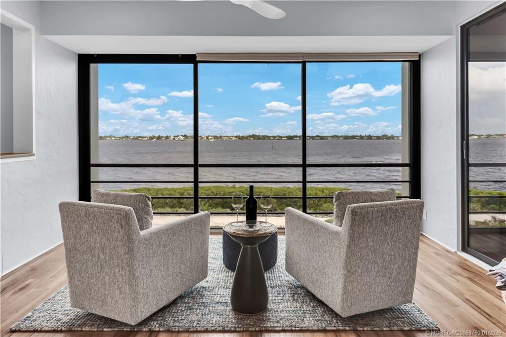 RIVERFRONT - BRΕAΤHΤAKΙNG WATERFRONT VIΕWS! Rеlax and unwind in this updated 2-bedroom, 2-bathroom 2nd floor condominium, expansive views of the St. Lucie River. Retreat boasts a stylish and comfortable ambiance. Upgrades: 2025 interior/ exterior paint, 2023: A/C, barn doors, 2021: Lanai fan, living room fan, (8) recessed ceiling lights, dining room hanging light fixture, kitchen pendant light, automatic lanai blinds. Experience waterfront living! Harbour Ridge is a private, mandatory membership community featuring 2 beautiful 18-hole championship golf courses, 9 Har-Tru tennis courts, pickle-ball courts, impressive fitness facility w/ pool, sprawling waterfront clubhouse w/ 3 dining rooms, 2-mile riverfront walking path, biking, yacht club, and marina with boat slips available for additional fee. $125,000 Equity ($1,000 Refundable) due at closing. Monthly HOA Fee includes Club Dues, Trail Fees, POA, Village HOA, Capital Funds Fees & appropriate taxes.
