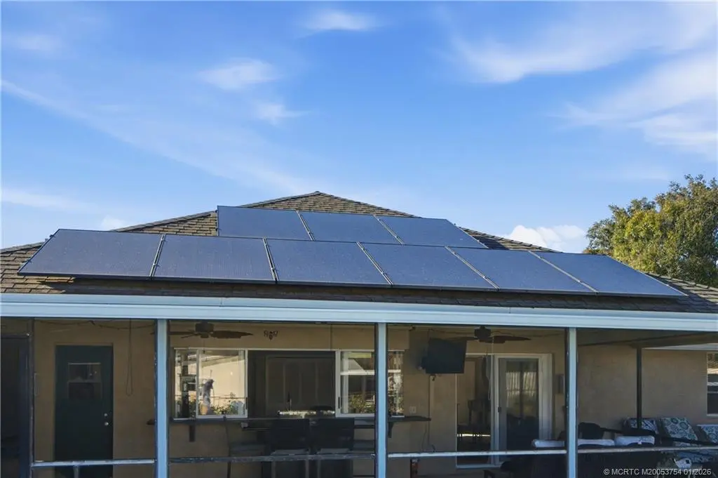 This charming and well-maintained 3 bedroom, 2 bath CBS pool home features a desirable split floor plan with separate living and family rooms, creating both functionality and a cozy feel. The large kitchen offers ample space for gathering, cooking, and entertaining and there is a separate formal dining room. Recent updates include a new hot water heater, newly resurfaced pool, new pool equipment, and partial impact windows and doors. Situated on a 1/4 acre lot, the property boasts a large, fully fenced backyard and screened-in patio area, ideal for outdoor living and days spent by the pool. No HOA, bring your toys! Home also has recently installed solar panels, which helps keep energy costs low. Located in desirable Jensen Beach, the home offers quick access to the beach, shopping, downtown Jensen, dining, entertainment, and parks.