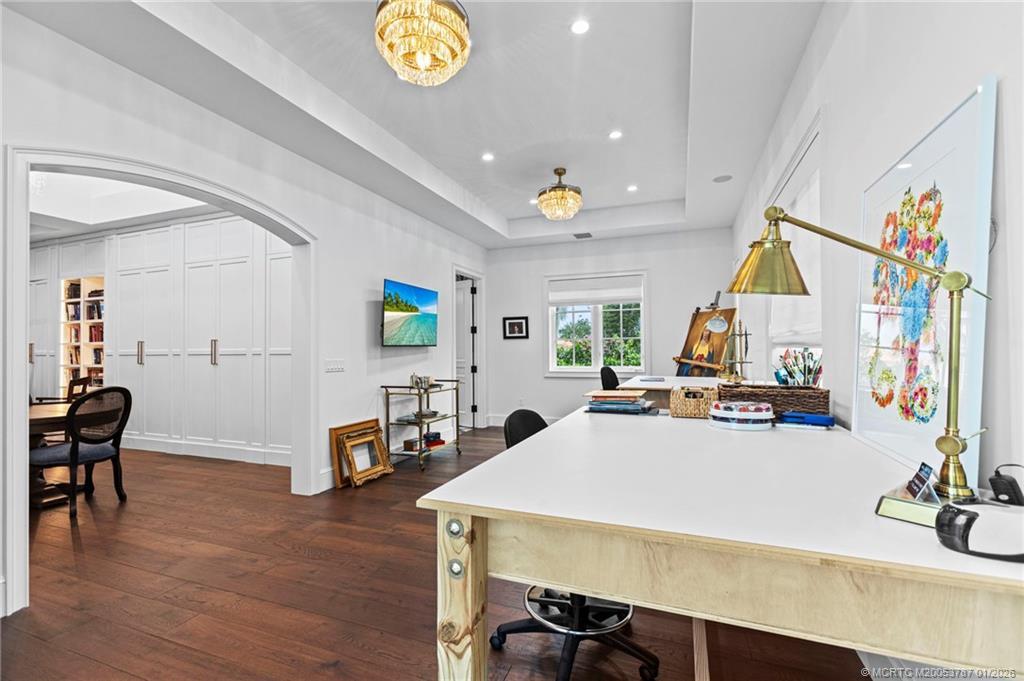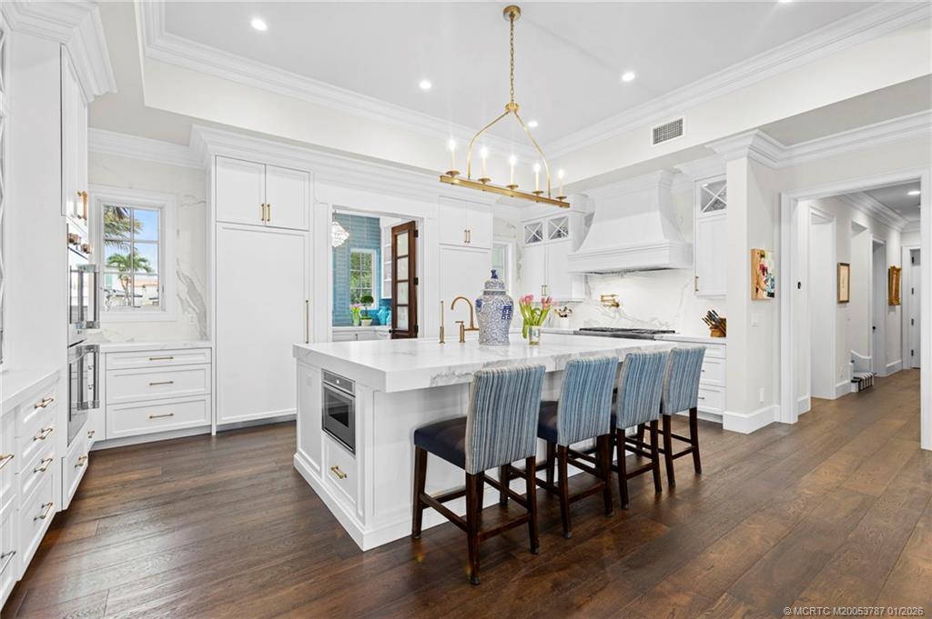 2020 Built waterfront masterpiece with brand new attached, but separate, guest quarters. Almost 7,000 sq ft of air-conditioned luxury situated at the end of a cul-de-sac on a point lot offering 340 ft of waterfront. Spectacular lagoon views and protected dockage. New sea wall installed when home was built. 2 existing lifts will accommodate boats under 40’ feet in length. Oversized 3 car garage. Incredible outdoor pool area & hot tub overlooking the blue/green Indian River Lagoon. No bridges blocking your access to the river or Atlantic Ocean.