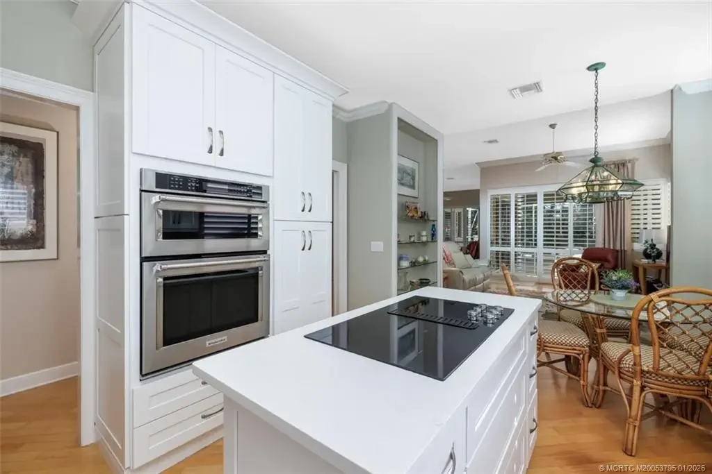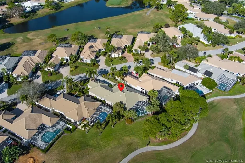 PARADISE FOUND! Fabulous 4B/3ba/3c.garage. From the double glassed door entry, the view is spectacular! Interior has panoramic views of POOL, LAKE AND GOLF COURSE. Large "under roof" dining area sports a wet bar. This warm/inviting home has many UPDATES:Roof, 2 A/Cs, kitchen, baths. This LR, FM & DR open plan home seemlessly flows for entertaining! 14' ceilings, crown molding, wood floors in main area, plantation shutters & shades top off this home. Gourmet kitchen boasts quartz counters, wood cabs, kitchenAid SS appliances, double wall oven, microwave dishwasher, disposal & pantry. Gracious primary bedroom w/SGDs to lanai & 2 fitted walk-in closets leads to stunning updated large cabana bath. Ensuite guest bedroom off foyer also perfect for a den. 2nd & 3rd bedroom also offer a 2nd cabana bath. Club memb. optional but must join to use facilities. MAINTENANCE-FREE EXTERIOR! Club/Corp/Invited is an internat'l corp w/reciprocity at other clubs. Easy access I-95/Turnpike.