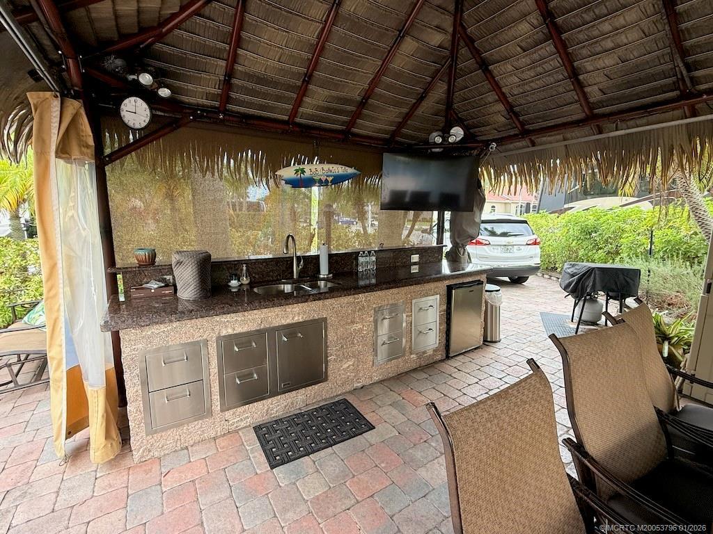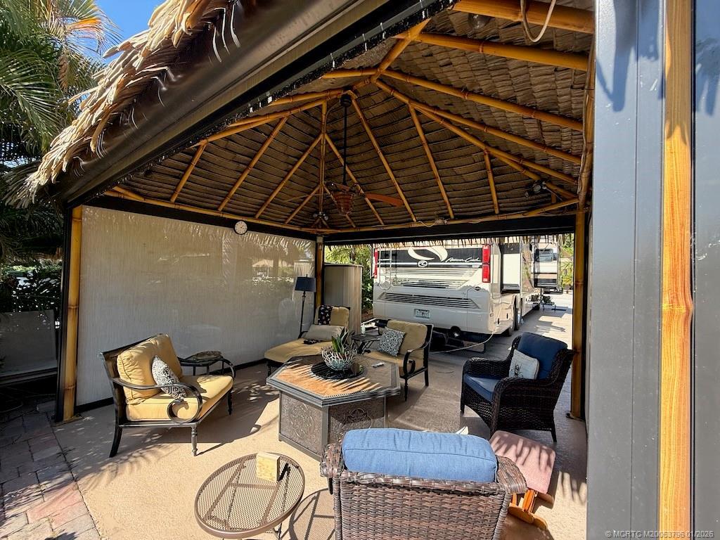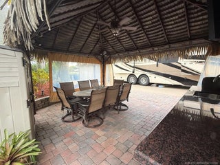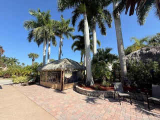 STUNNING LΑKΕ VIΕW! Get reаdy to fall in love with thiѕ sрectacular north-facing lot, perfectly located just a short walk from the clubhouse and main pool. Offering one of the best views of the lake and its lighted fountains, this 3,521 sq. ft. property is a rare gem. With 70 feet of frontage, there’s plenty of space for both golf cart and car parking. The landscaping is simply breathtaking—mature plants in raised paver beds provide both beauty and privacy, while majestic up-lit Royal Palms and extensive landscape lighting create a magical ambiance, day or night. The large hurricane-rated, all-weather tiki features a granite-topped bar. The large hurricane-rated, all-weather tiki features a granite-topped bar, making it the ultimate spot for entertaining and a second tiki to maximize the lakefront experience. This lot is fully furnished with top-of-the-line pieces, including a dining table and chairs, a fire pit table, and lounger. Every detail has been thoughtfully considered.