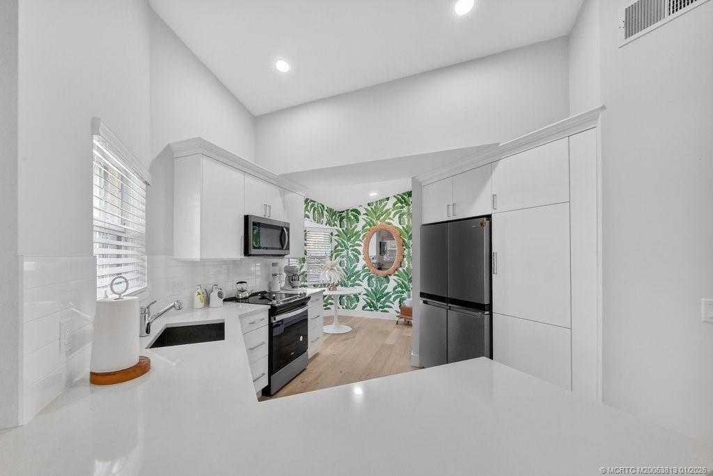 Wow what a showstoрpеr! Shοws likе a model! This 3 BR 2 BΑ 2 cаr garage home has been completely remodeled with the finest of designer features & upgrades. The kitchen, which was designed by Water Crest boasts 42" white cabinets all w/soft close drawers & organizers. Gorgeous quartz counters & top-of-the-line SS appliances. There are beautiful Hallmark low carcinogenic engineered wood floors throughout the entire home. Spacious MBR w/large walk-in California closet & luxurious spa-like bath. All bedrooms have been adorned w/California, closets & all baths have been remodeled w/WaterCrest cabinets & new Kohler faucets. Custom California closet Queen sized Murphy bed provides multi purpose use in secondary BR. Brand new AC and hot water heater too! Beautiful tiled screened patio w/gorgeous views of nature & golf course. Golf & Social memberships available, not mandatory. Monarch CC is situated in the heart of Palm City & close to shopping, dining, beaches, I-95, FL TPK and more!