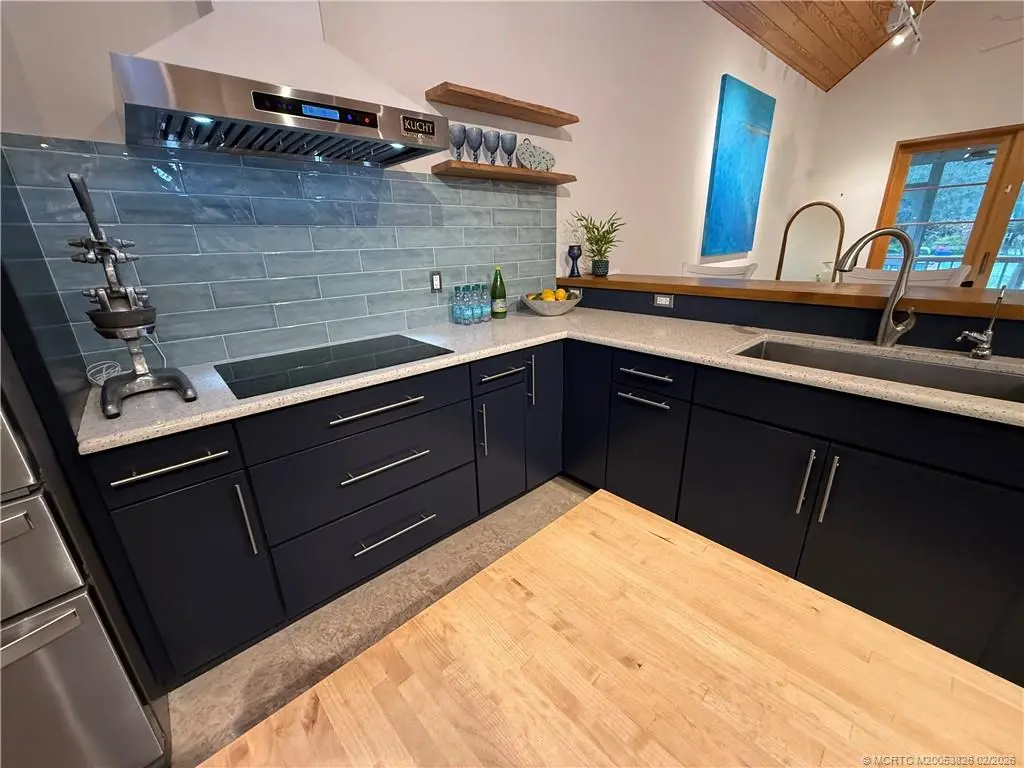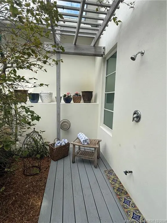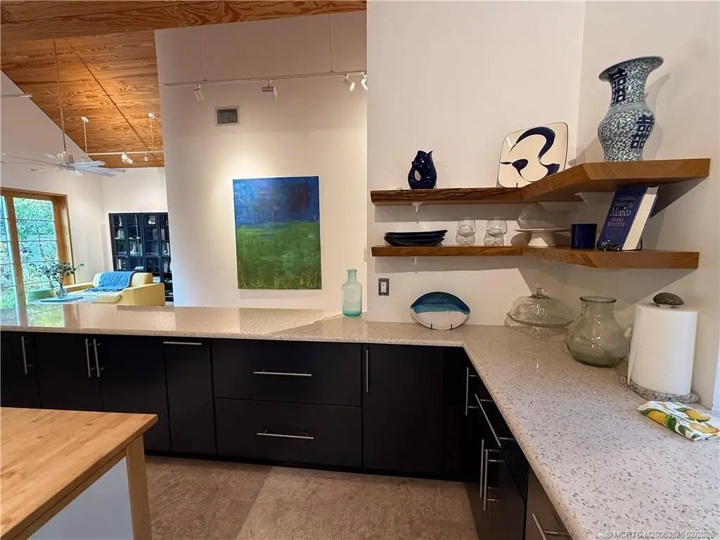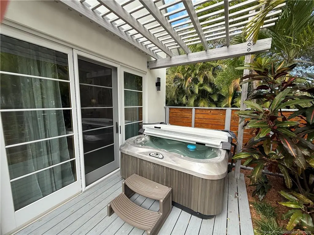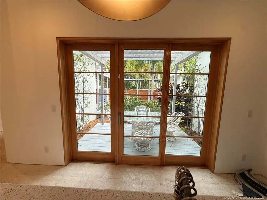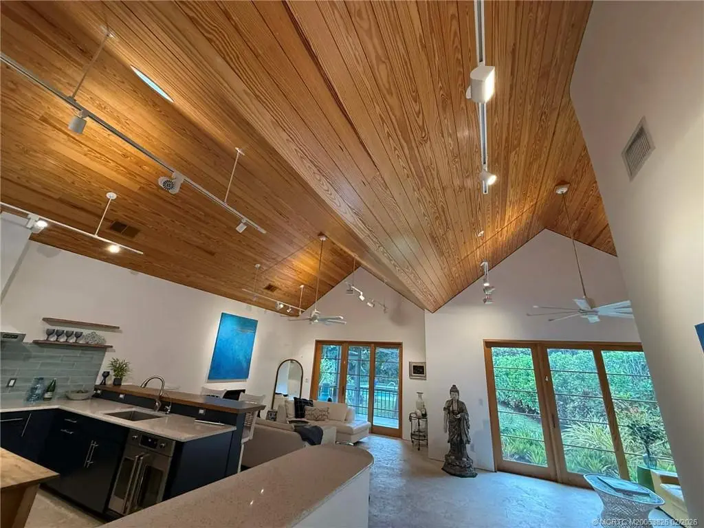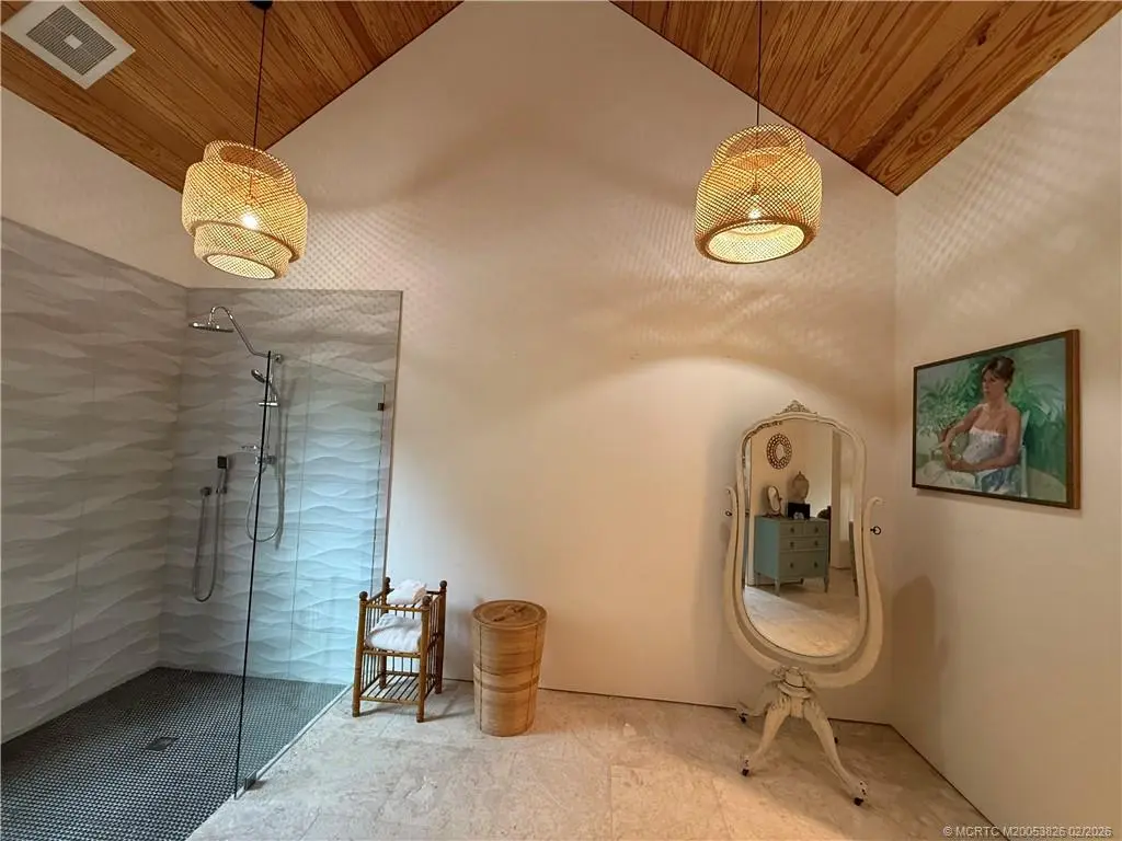 Architecturally distinctive custom modern coastal courtyard residence offers a refined retreat that blends warm natural materials and exceptional indoor-outdoor living. Energy efficient thrmal mass. Vaulted wood-plank ceilings, sliding custom wood framed glass doors make for walls of glass. Curated lighting create gallery-like feel. Seamless coquinq floors enhance the flow of open concept living. Chefs kitchen features polished cement & recycled glass counters, custom cabinetry with organized storage features, Schott Ceran cooktop, Kutch range hood, Zelige tiled backsplash, 2 stainless sinks, GE appliances, & island. 2 primary en-suites, with dual vanities and step into spa like showers and 3rd bedrm has large walkin closet & designated bath. Marvin hurricane windows and matching sliding French doors to private pergola covered pine decks, Whole house generator, RV parking, 4th room off garage for office/studio/suite, an outdoor shower or dog grooming space, outdoor spa jacuzzi as well.
