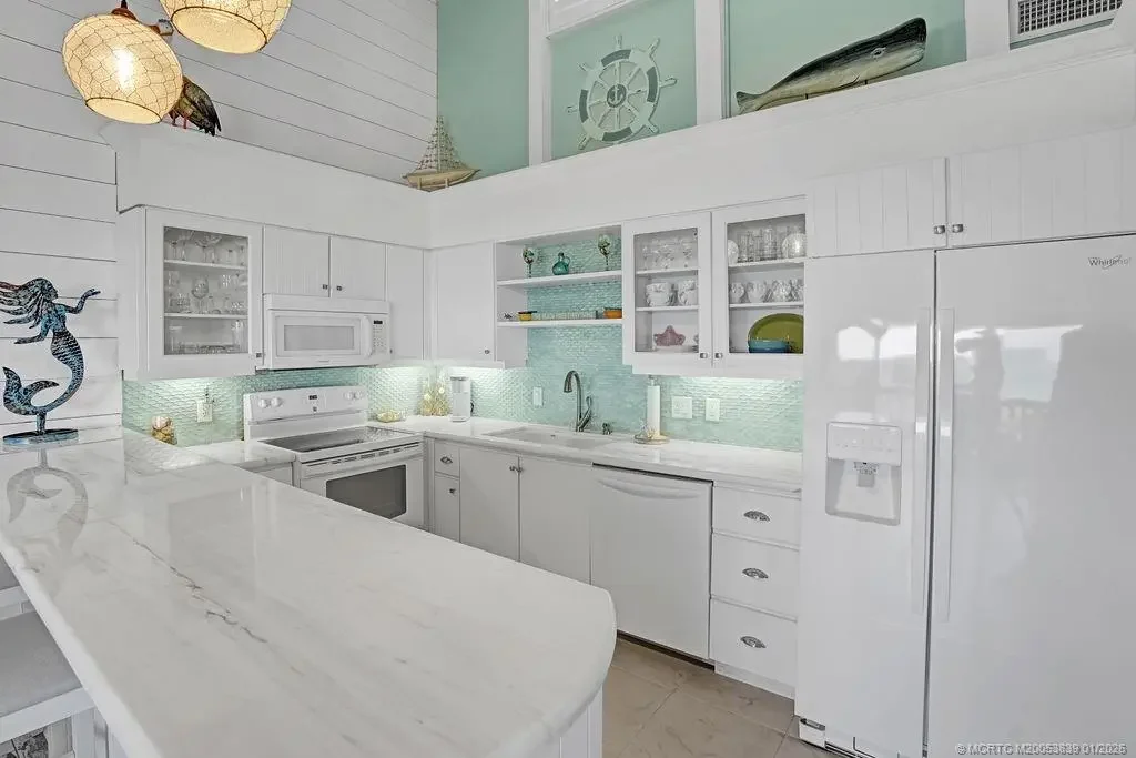 Winter retreat! Kick back and relax in this fully furnished/turnkey beachfront paradise conveniently situated on Martin County's Hutchinson Island. Wake up to postcard perfect mornings with leisurely strolls on the beach and take lunch by the impressive pool. A short drive to restaurants, grocery stores and medical offices. For or those inclined for more vigorous exercise, take a walk or bike ride on the Island's sidewalk that travels as far north as Fort Pierce's Inlet. This charming coastal themed condo is light and airy with soaring cathedral ceilings. The kitchen features elegant marble counters, a classy glass backsplash and modern appliances. 2 pets are permitted. There are no elevators. Stay young with steps! Rentals - 2 months, 6 times per year. This unit is in move-in condition. Bring your suitcase and enjoy it from Day 1! Don't miss this opportunity!
