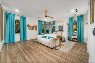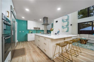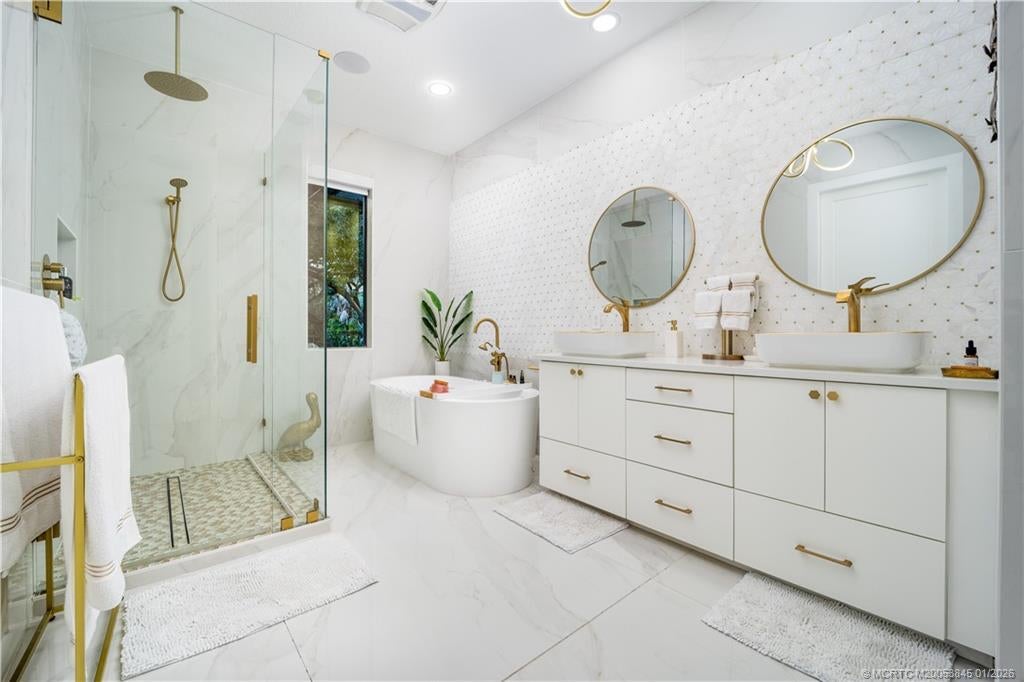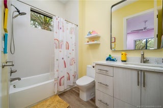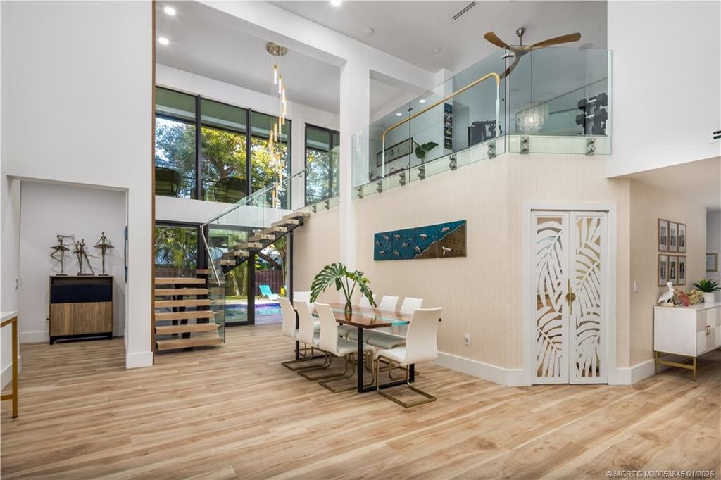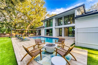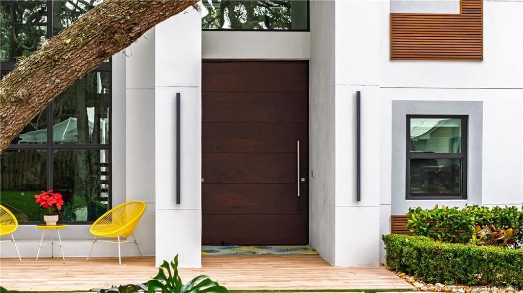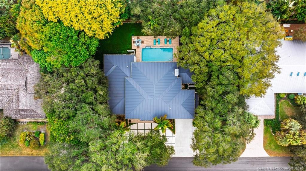 Welcome to Villa Pelican in South Sewall’s Point. This reimagined home offers soaring 18.5–19’ ceilings, 5 bedrooms, and 5 full bathrooms across just under 4,000 SF following a full renovation. Designed for seamless indoor/outdoor living, the layout includes an upstairs primary suite, three en-suite bedrooms downstairs, an additional guest bedroom, second-floor den, loft/gym, and a detached office with courtyard and pool access. The chef’s kitchen features custom plywood cabinetry, quartz countertops, high-end appliances, and an oversized island. Notable upgrades include new trusses, metal roof, foam insulation, Marvin impact windows, all new HVAC, plumbing, electrical, and drainfield, smart home technology, whole-home sound system, and reverse osmosis/alkaline water system. Outdoor living centers around a saltwater heated pool, oversized pergola, artificial turf, new landscaping, EV hookup, and an A/C-cooled garage, located near Sewall's Point Park, beaches, restaurants, and shopping.