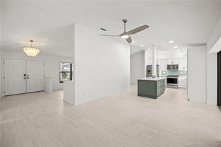 Discover this exceptional residence in the highly sought-after South Sewall’s Point neighborhood, known for its exclusivity and coastal charm. This 3-bedroom, 2-bath home offers peace of mind with a new roof and impact windows throughout. The interior features newly installed 12x24 ceramic tile flooring and a tastefully renovated kitchen, perfect for both everyday living and entertaining. The open dining and family room layout creates a bright, inviting atmosphere, while the split bedroom floor plan provides privacy for owners and guests alike. Enjoy the light-filled Florida room with expansive windows and sliding glass doors, seamlessly blending indoor and outdoor living. The pool has been refinished and sealed and features a new saltwater pool system. Flood insurance is not mandatory. Ideally located close to the beach and downtown Stuart for shopping and dining, and zoned for highly rated schools.