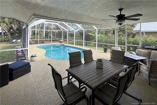 Amazing 3 Bedroom, 2 Bath, Concrete Block home with SO much to offer! It looks like something straight out of Southern Living Magazine! Custom Quality Construction, Totally Renovated, Beautiful Yard & Landscaping, and a Great Pool! All this in an Active Boating Community with Ocean Access. Boat Storage based on availability. Key home features include: Plantation Shutters, custom lighting, crown molding, 6" baseboards, New Kitchen & appliances 2023, remodeled Bathrooms 2025, White Oak distressed hardwood flooring 2025, Exterior painted in '23, Interior painted in '25, New Metal Roof 2023, AC replaced in 2020.... the list goes on! River Landing is a Gated Community, with a Low HOA, centrally located to all that Palm City and Stuart have to offer. Professional Photos being taken later this week.