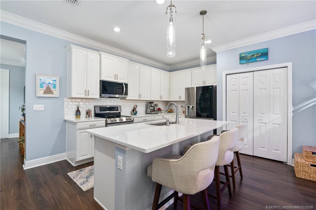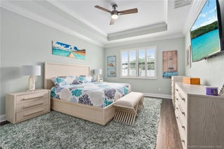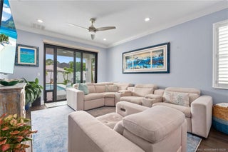 Newer pool home with no expense spared! Located in Visconti, within the highly desirable Sandpiper/Club Med area, this immaculate 3-bedroom, 3-bath, 2-car garage residence is truly move-in ready. Thoughtfully designed & beautifully upgraded, the home features hurricane-impact windows and doors, luxury LVP flooring throughout, crown molding, custom closets, and a tray ceiling in the primary suite. The chef’s kitchen boasts 42” cabinets with crown molding, stainless steel appliances, & premium finishes. Step outside to your private oasis with a new in-ground saltwater pool complete with an electric heater perfect for year-round enjoyment. Additional upgrades include whole-house gutters, turf, high end lighting and new fans. Situated in a low-HOA, gated community with lawn maintenance included. Enjoy easy access to the Turnpike, a golf-cart ride to Club Med(boat slips available for lease), multiple nearby boat ramps and golf courses, and just minutes to dining, shopping, and the beaches.