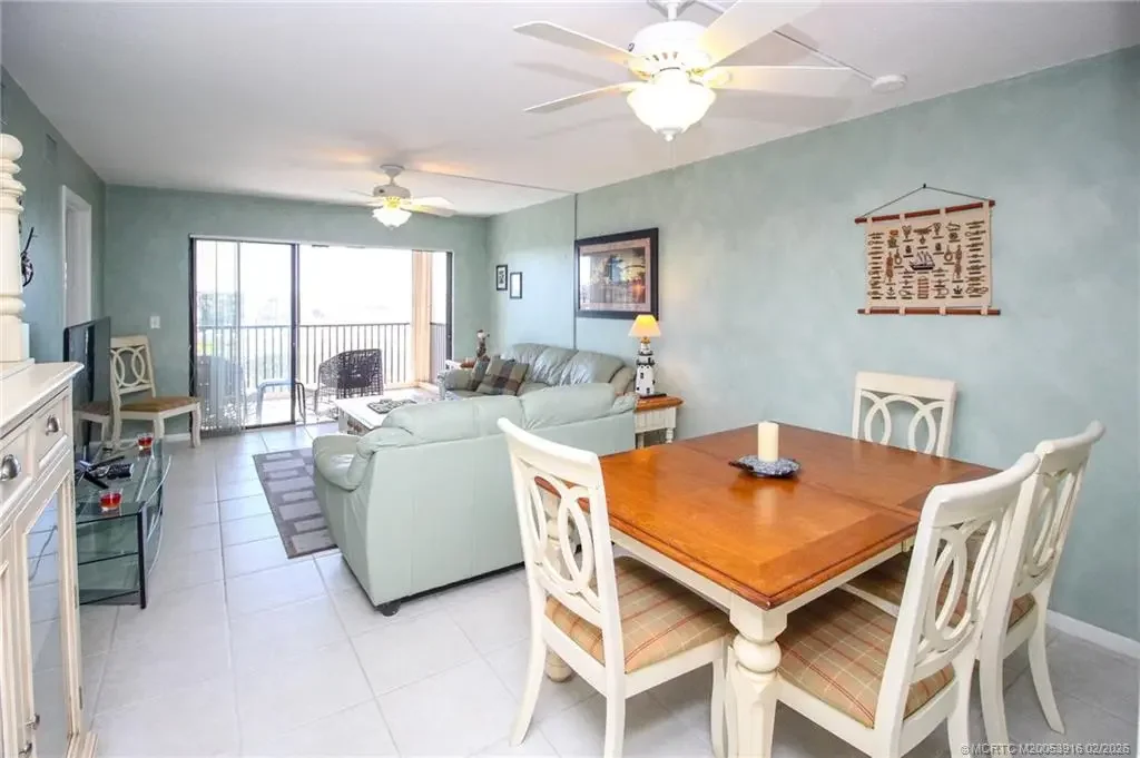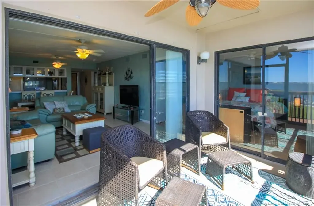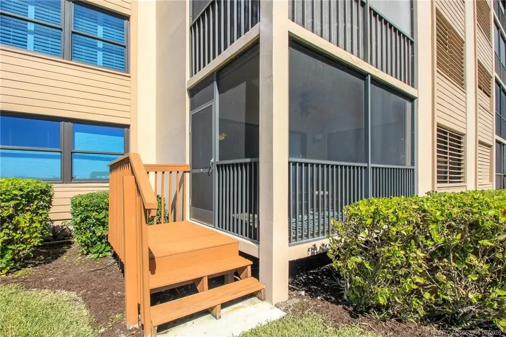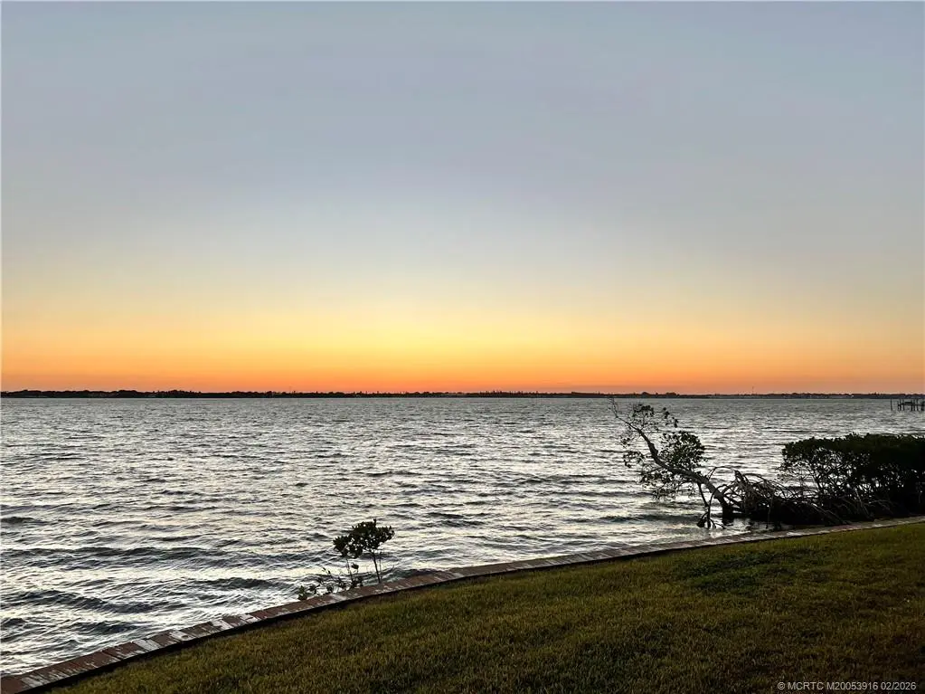 Don't miss out on one of Sandpebble's best wide water views from this ground floor gem on the Indian River Lagoon. The smart open plan features tile and laminate floors, split bedrooms for added privacy, an efficient kitchen layout and a spacious living/dining area that opens onto the screened, covered balcony. Step out from the private deck to take in breathtaking sunsets from the docks or entertain at one of 3 riverside pools while grilling your favorite meal. Private beach access with two additional pools, kayak storage, tennis/pickle ball and boat slips for rent (subject to availability) at $1.50 per linear foot per month plus a $500 annual fee. Units are rentable right away with a 60-day minimum, up to four times annually. Owners are permitted one pet under 20 pounds. This is the perfect opportunity to enjoy mild Florida winters or year-long relaxation in our charming seaside small town!